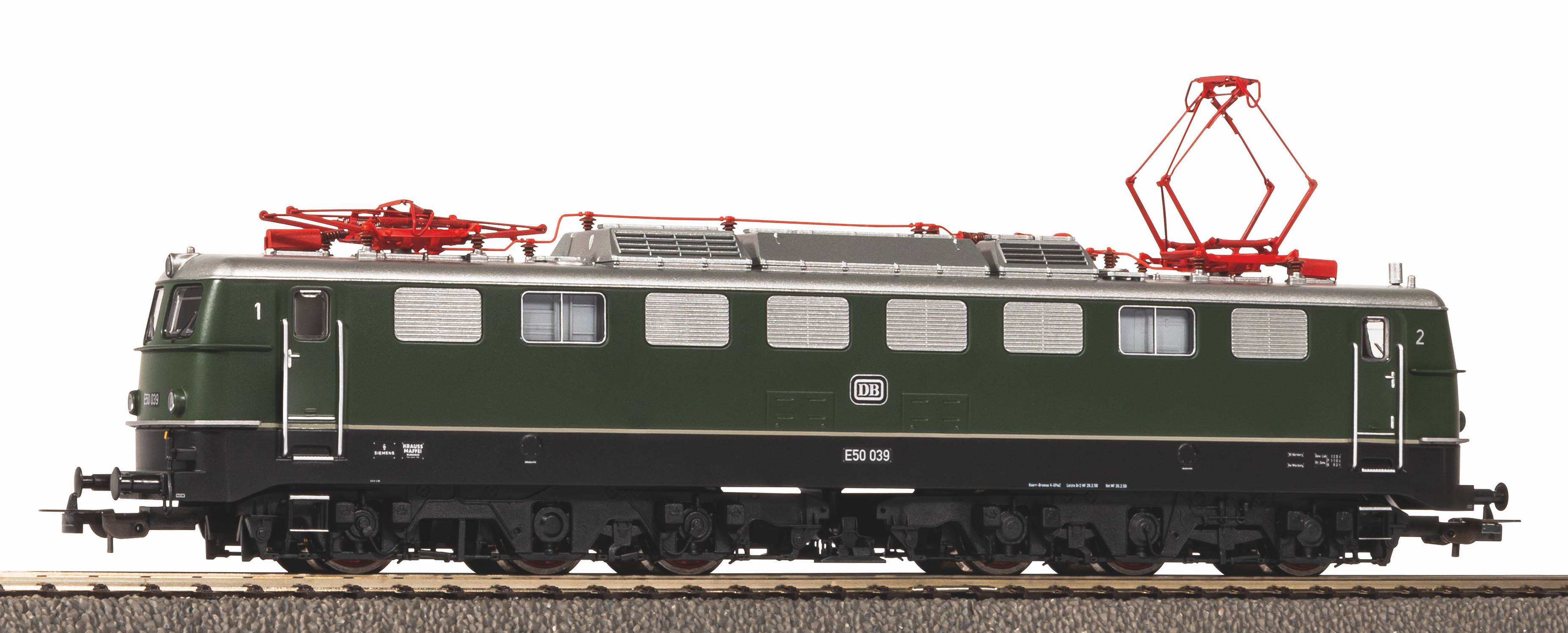 Neuheit 2023: Druckvariante der BR E 50 der DB in Epoche III. Das Modell folgt mit seiner Konstruktion der bewährten PIKO Antriebsausführung. Der solide fünfpolige schräg genutete PIKO Motor sorgt mit zwei präzise ausgewuchteten Schwungmassen für ausgezeichnete Laufeigenschaften. Die Zugkraft der über vier Achsen angetriebenen Lok wird über zwei Haftreifen verstärkt, die in diagonaler Anordnung auf den innen laufenden Achsen beider Drehgestelle sitzen. Die Beleuchtung der Stirn- bzw. Schlusslampen erfolgt über LEDs, deren Rot bzw. Weiß mit der Fahrtrichtung wechselt. Die Führerstandsbeleuchtung und das Schlusslicht können digital geschaltet werden. Für die unkomplizierte Nachrüstung eines Digital-Decoders steht eine moderne PluX22-Schnittstelle zur Verfügung.