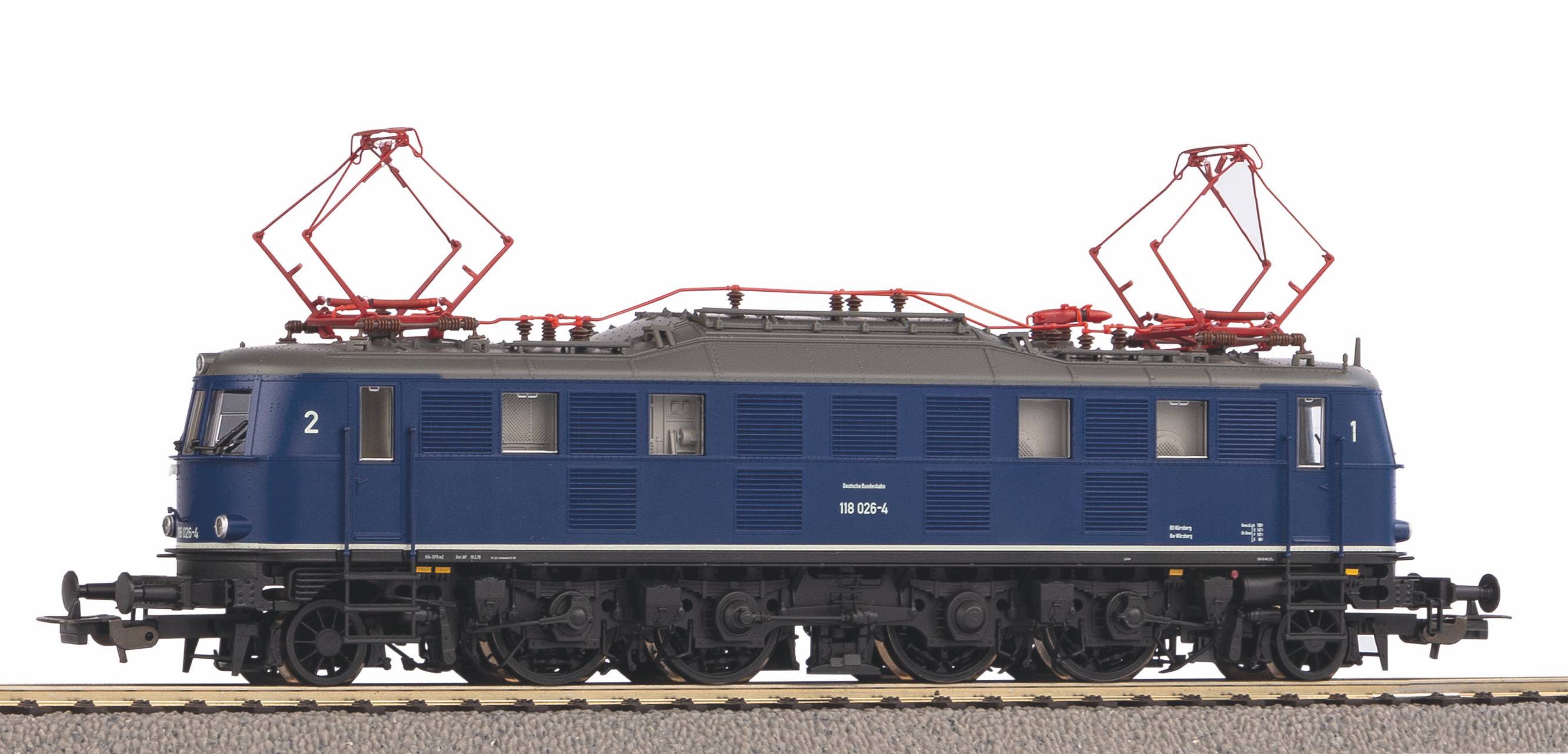 Mit dem hervorragend detaillierten Modell der Kultlokomotiven der BR 118 setzt PIKO einer weiteren deutschen Altbauelektrolokomotive ein würdiges Denkmal. Das PIKO Modell überzeugt durch die stimmige Umsetzung ihrer Vorbildmaschine der Bundesbahn. Hervorzuheben sind die feinen Radsätze, die exakte Nachbildung der vorbildgerechten Dachausrüstung mit filigranen Stromabnehmern und die exakte Nachbildung der Frontpartien. Die Führerstands- und die Maschinenraumbeleuchtungen sowie die fahrtrichtungsabhängig funktionierenden Front- und Schlusslichter sind mit PluX22 Decoder digital schaltbar. Das mit einem Zinkdruckgussrahmen versehene Modell besitzt hervorragende Fahreigenschaften und hohe Zugkräfte. Die Soundversion besitzt werkseitig einen PluX22-SoundDecoder.