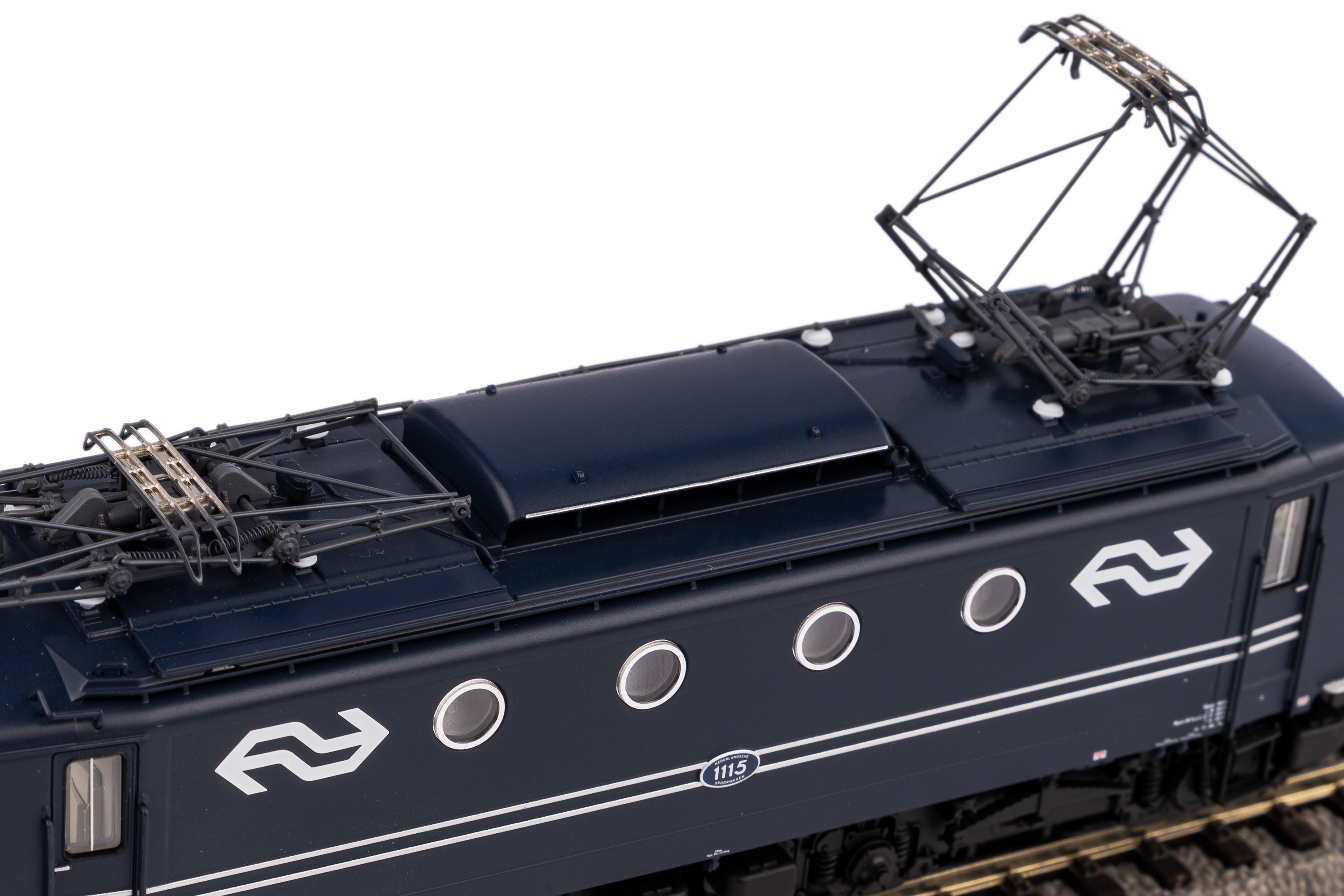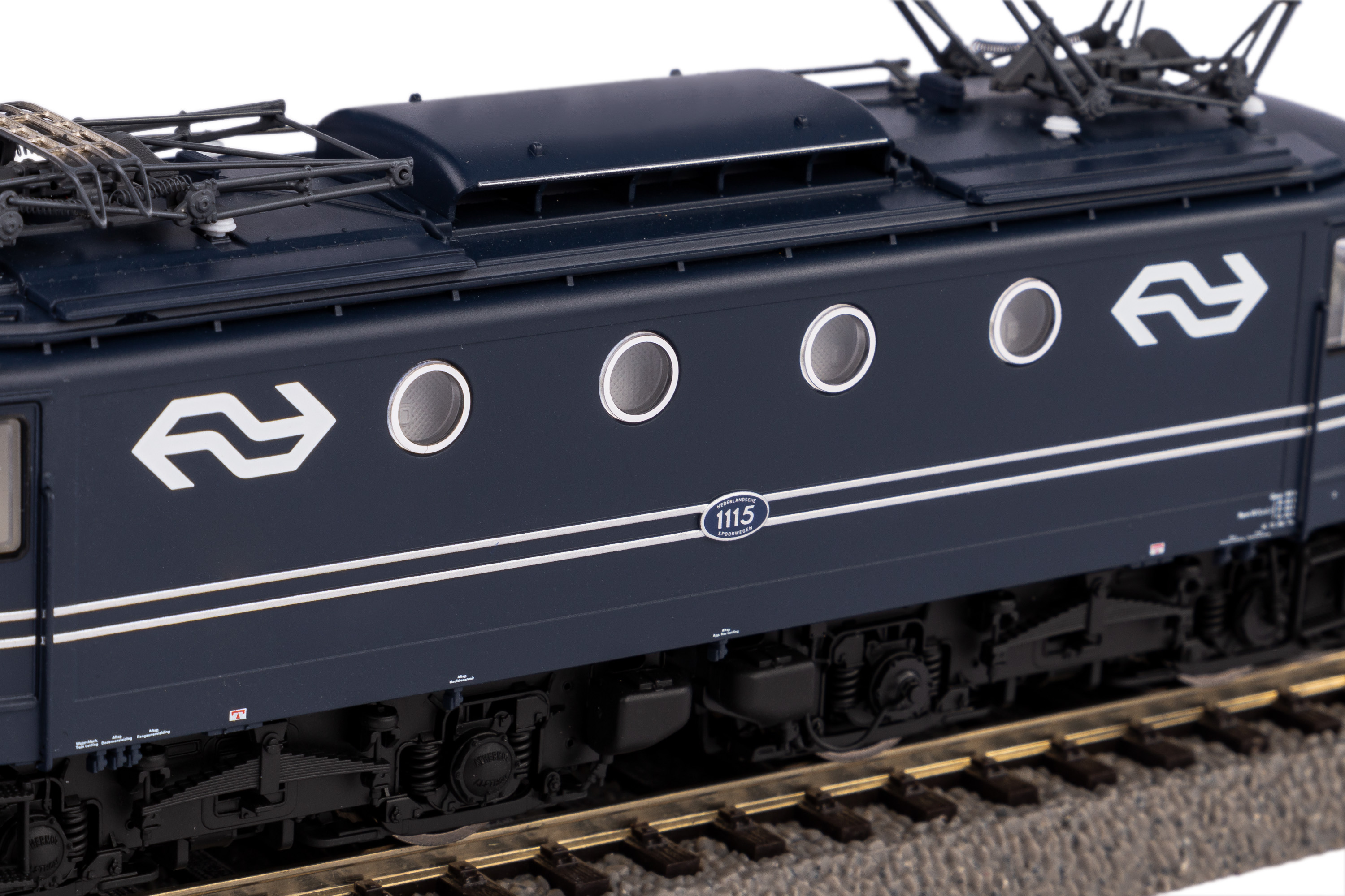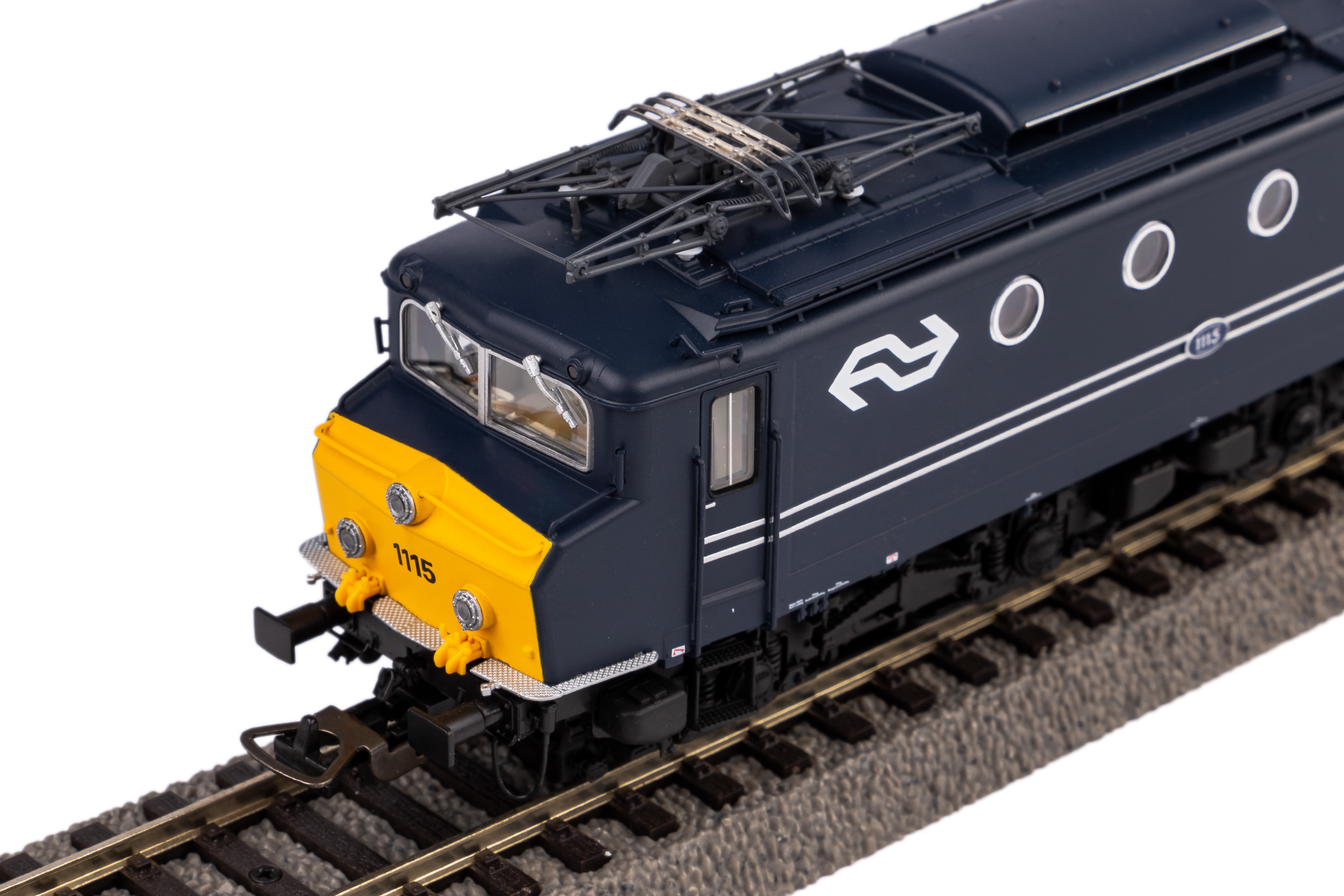 Das PIKO Expert Modell der Reihe 1100 der Niederländischen Staatsbahnen (NS) überzeugt mit einem gelungenen Formenbau, stimmigen Dachrundungen und vielen angesetzten Teilen, wie feine Isolatoren und Stromabnehmer, freistehende Griffstangen und Treppen. Das Modell besitzt die passenden Lampenformen, scharf gravierte Drehgestellblenden mit realistischen Federpaketnachbildungen und originalgetreue Nachbildungen der Pufferbohlen. Die Beleuchtung erfolgt mittels LEDs. Die Führerstand- und Maschinenraumbeleuchtungen sowie die fahrtrichtungsabhängig funktionierenden Front- und Schlusslichter sind mit einem PluX22-Decoder digital schaltbar. Der schwere Rahmen aus Zinkdruckguss und der Motor mit zwei großen, präzise ausgewuchteten Schwungmassen sorgen für ausgezeichnete Fahreigenschaften und hohe Zugkräfte. Das Modell verfügt über eine aufgeräumte Platine mit PluX22-Schnittstelle und ist für eine unkomplizierte Nachrüstung mit Sounddecoder und großem Lautsprecher vorbereitet.