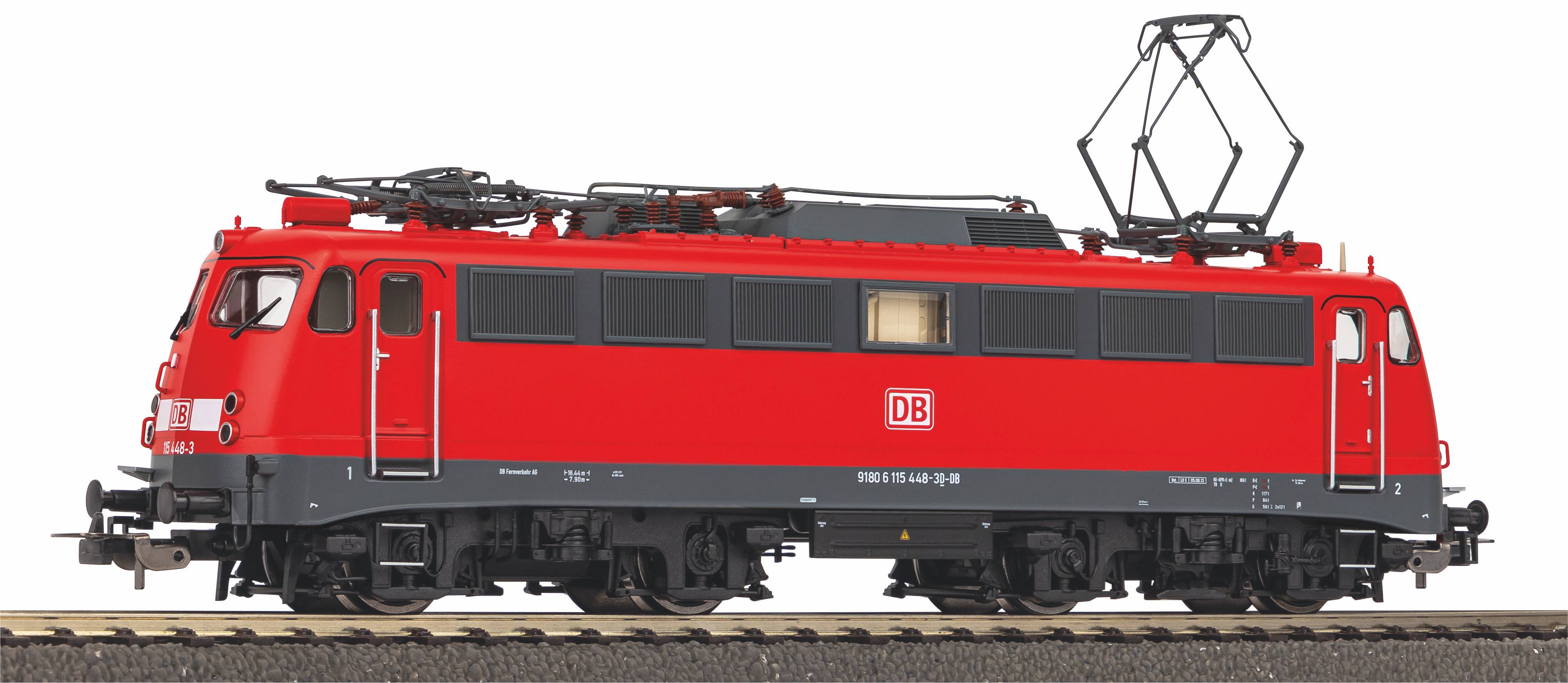 Neuheit 2024: Die Elektrolokomotive BR 115 mit vorbildgerechter Lackierung und Bedruckung der DB AG in Epoche VI. Das Modell überzeugt durch eine perfekt nachgebildete Dachausrüstung mit feingliedrigen Scherenstromabnehmern aus Metall, zahlreiche angesetzte Teile und filigrane Drehgestelle. Der kräftige Motor mit Schwungmassen sorgt für große Laufruhe. Das Modell verfügt über einen fahrtrichtungsabhängigen Lichtwechsel in weiß und rot sowie über eine digital schaltbare Beleuchtung im Führerhaus. Das Modell besitzt ab Werk einen passenden PSD XP Sound-Decoder mit größtmöglichem Lautsprecher.