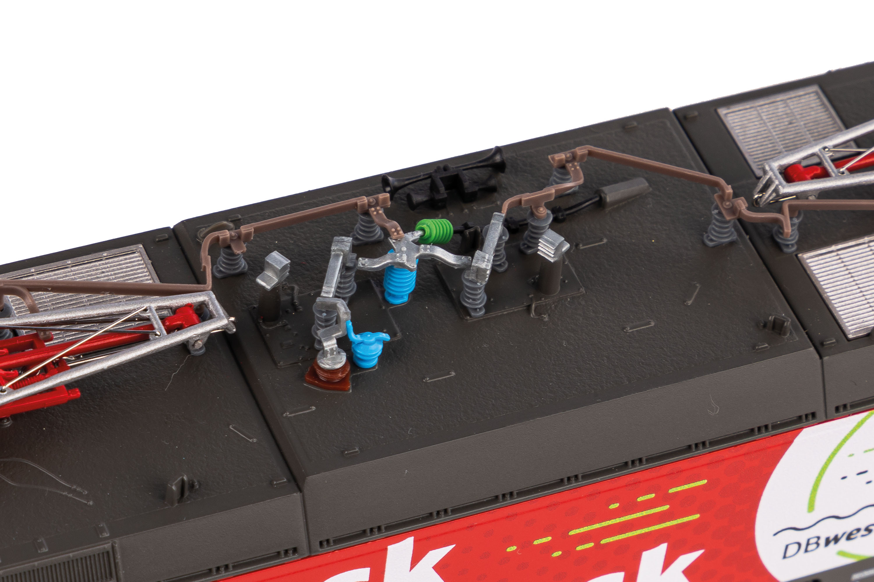 Druckvariante der BR 193 im Design "Unlock the dock" der Epoche VI. Mit der BR 193 liefert PIKO ein hochpräzise gefertigtes Modell, das auf der Basis eines soliden Zinkdruckgussrahmens und der Ausstattung mit bewährten PIKO Standards über zahlreiche Extras verfügt. Der erprobte PIKO Motor sorgt mit zwei großen Schwungmassen für ausgezeichnete Laufeigenschaften. Die Zugkraft der über alle vier Achsen angetriebenen Lok wird über zwei Haftreifen verstärkt, die auf den innen laufenden Achsen beider Drehgestelle in diagonaler Anordnung zueinander sitzen. Die Beleuchtung der Stirn- bzw. Schlusslampen erfolgt über LEDs, deren Rot bzw. Weiß mit der Fahrtrichtung wechselt. Zum äußerlich eleganten Erscheinungsbild dieses Modells gehören eine stimmig nachgebildete technische "Dachlandschaft" und sorgfältig detaillierte Drehgestelle mit vorbildgerechten Radscheibenprofilen. Das Modell ist für die einfache Nachrüstung mit Sound und größtmöglichem Lautsprecher vorbereitet und verfügt über eine PluX22-Schnittstelle.