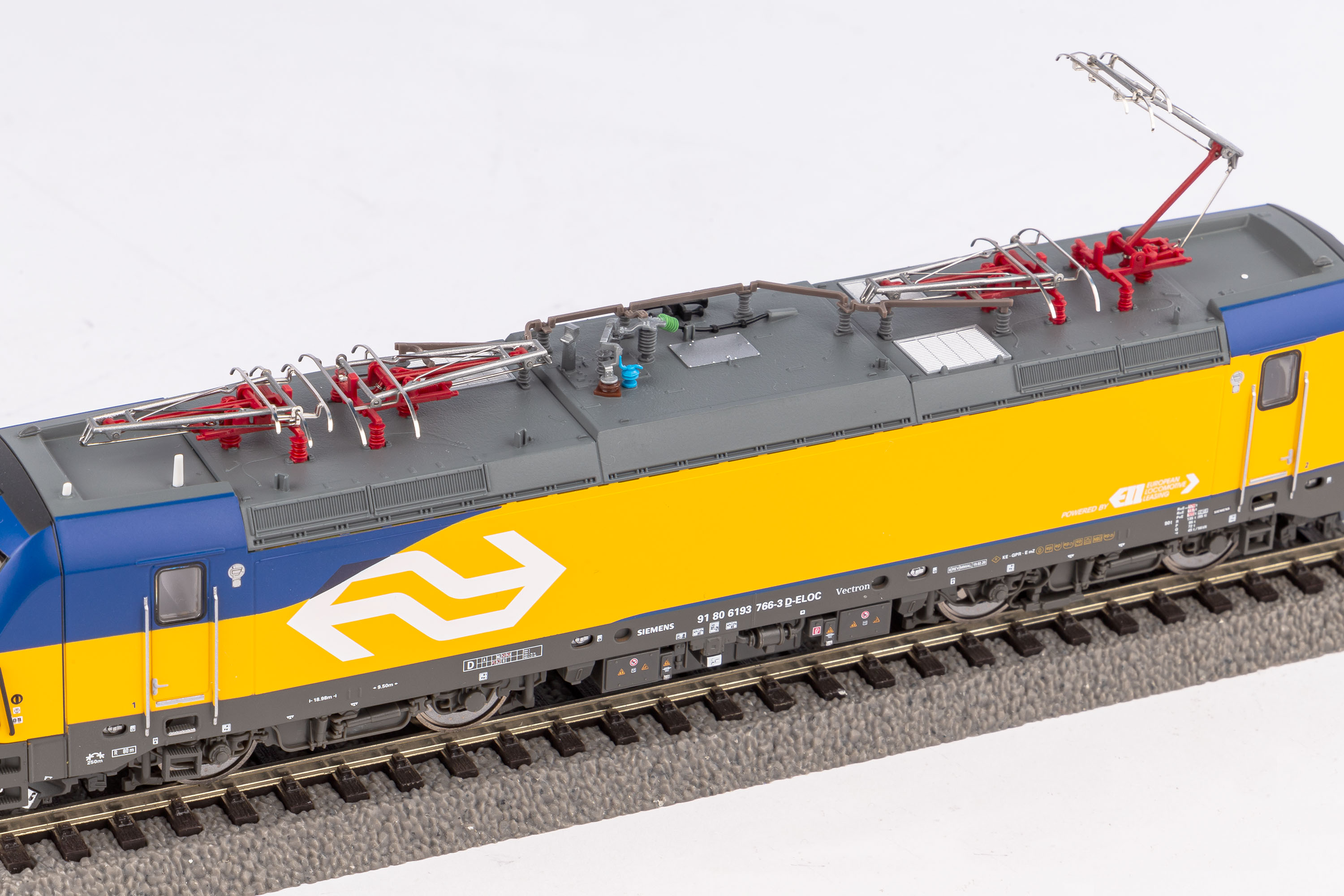 Mit dem H0-Modell der E-Lok Vectron erfüllt PIKO die Wünsche von PIKO Fans, die sich sowohl als Anlagenbetreiber wie auch als Sammler für Modelle nach Vorbildern modernster Bahntechnik entschieden haben. Mit dem Vectron liefert PIKO ein hochpräzise gefertigtes Modell, das auf der Basis eines soliden Zinkdruckgussrahmens und der Ausstattung mit bewährten PIKO Standards über zahlreiche Extras verfügt. Der erprobte PIKO Motor sorgt mit zwei großen Schwungmassen für ausgezeichnete Laufeigenschaften. Die Zugkraft der über alle vier Achsen angetriebenen Lok wird über zwei Haftreifen verstärkt, die auf den innen laufenden Achsen beider Drehgestelle in diagonaler Anordnung zueinander sitzen. Die Beleuchtung der Stirn- bzw. Schlusslampen erfolgt über LEDs, deren Rot bzw. Weiß mit der Fahrtrichtung wechselt. Zum äußerlich eleganten Erscheinungsbild dieses Modells gehören eine exakt nachgebildete technische "Dachlandschaft" und sorgfältig detaillierte Drehgestelle mit vorbildgerechten Radscheibenprofilen. Druckvariante der BR 193 als BR 193 ELL der NS in Epoche VI. Das Modell verfügt in der Soundversion bereits werkseitig über einen passenden PluX22-SoundDecoder.