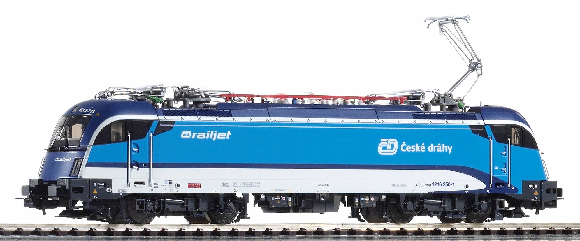Druckvariante der Rh 1216 in der Ausführung Railjet aus Epoche VI. Das Modell der Elektrolok besitzt in der Soundversion ab Werk einen PluX22-SoundDecoder.