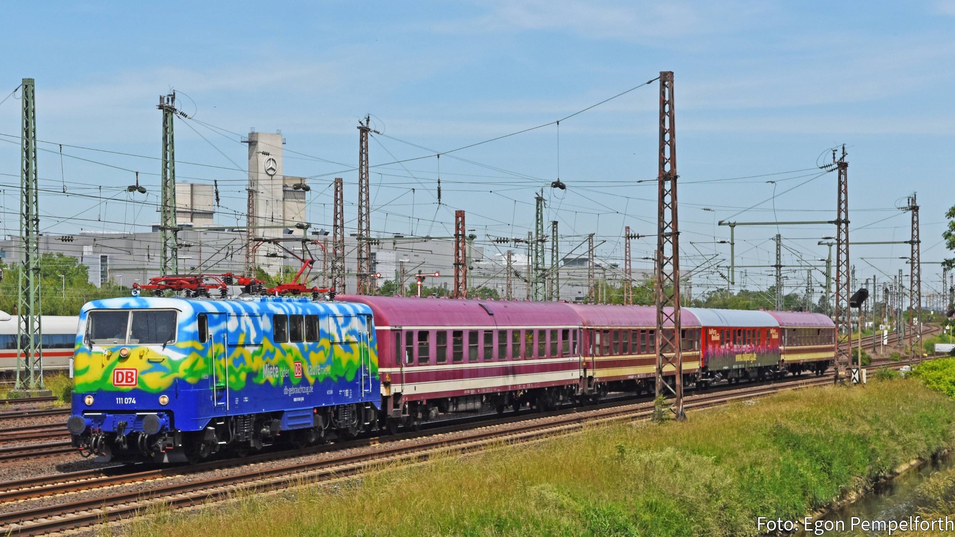 Holen Sie sich ein echtes Unikat auf die Schienen! Mit der BR 111 074-1 präsentieren wir unser neuestes PIKO Sondermodell, das die Herzen von Epoche-VI-Fans und Nostalgikern gleichermaßen höherschlagen lässt. Unter dem liebevollen Namen "Hilde" ist diese Maschine im Dienste der DB Gebrauchtzug unterwegs und erinnert mit ihrem auffälligen Touristik-Design an die legendären Urlaubs-Züge der 90er Jahre.