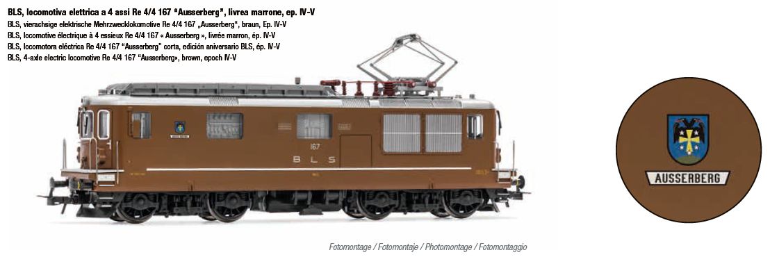 BLS, locomotora eléctrica Re 4/4 167 ?Ausserberg? corta, edición aniversario BLS, ép. IV-V