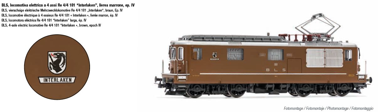 BLS, locomotive électrique à 4 essieux Re 4/4 181 « Interlaken », livrée marron, ép. IV