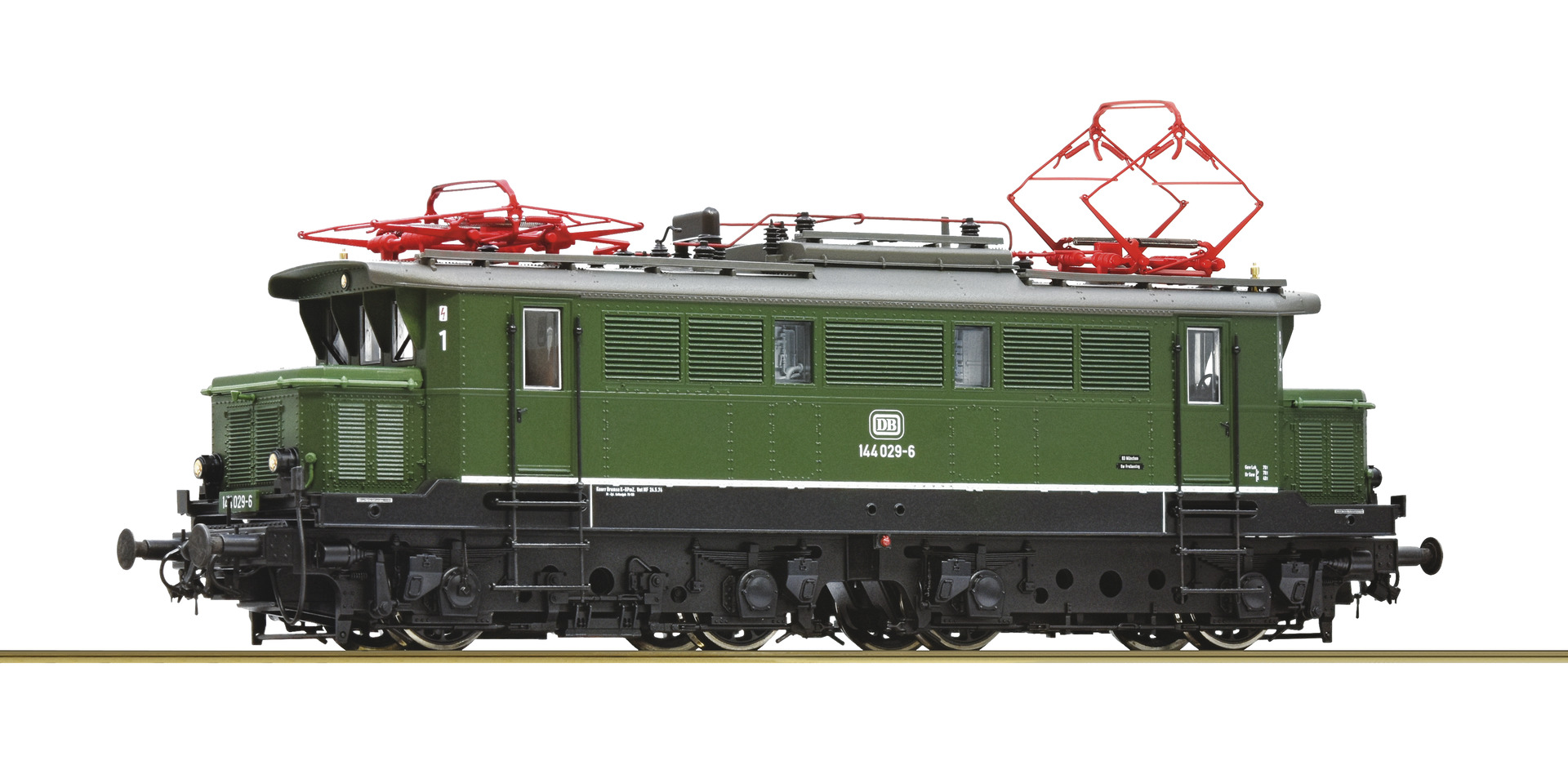 Elektrolokomotive Baureihe 144 der Deutschen Bundesbahn. Neukonstruktion! - Erstmals mit PluX22-Schnittstelle und LED-Beleuchtung sowie als Soundausführung erhältlich - Separat angesetzte Scheibenwischer - Vollständiger Führerstand - Radsätze mit niedrigen Spurkränzen - Im Digitalbetrieb mit schaltbarem Abblendlicht, einzeln schaltbarem Spitzen- oder Schlusslicht, Führerstandsbeleuchtung und Maschinenraumbeleuchtung Von der Elektrolokomotive der Baureihe E 44 (ab 1968 bei der DB Baureihe 144) wurden von 1932 bis 1954 fast 200 Lokomotiven in Dienst gestellt. Die Leistung der vierachsigen Drehgestell-Lokomotiven betrug rund 2.200 kW, dabei lag die Höchstgeschwindigkeit bei 90 km/h. Die Loks bewährten sich dabei sowohl vor Personenzügen als auch vor Güterzügen. Einige Lokomotiven wurden mit einer Wendezugsteuerung ausgerüstet und somit im Vorortverkehr in Ballungsräumen eingesetzt. Die E 44 – aus der die Baureihen E 44.5, E 93 und E 94 weiterentwickelt wurden – darf mit Recht als eine der zuverlässigsten und erfolgreichsten Elektrolokomotiven bezeichnet werden, verhalf sie doch der Drehgestellbauweise und dem Tatzlagerantrieb zum Durchbruch.