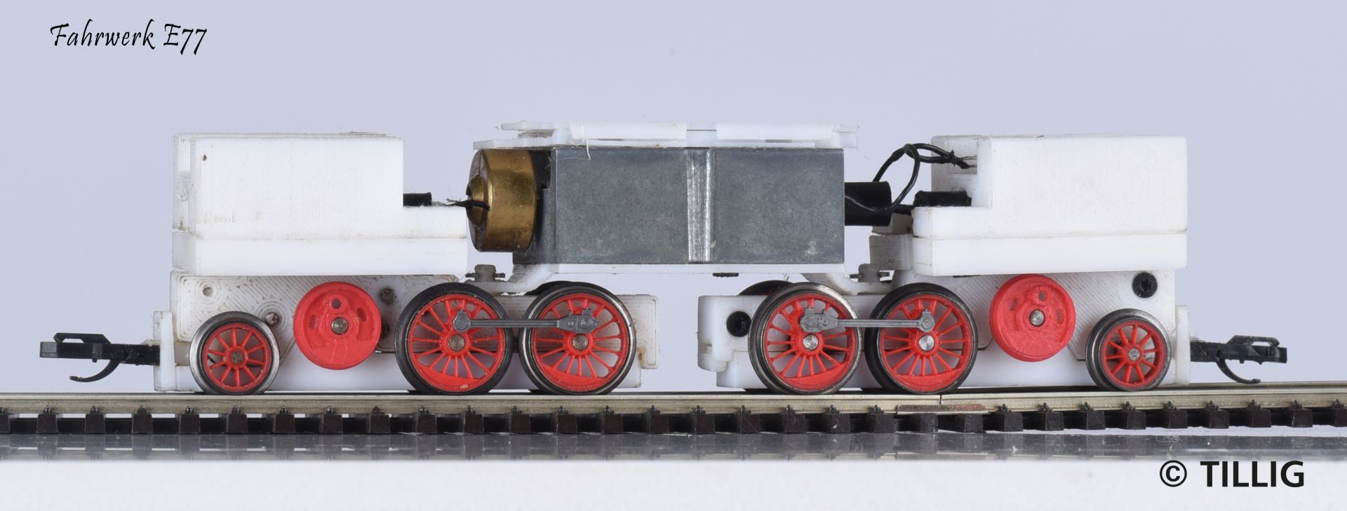 Sollte es doch eine E 77 zu Betriebszeiten mit roten Radkörpern gegeben haben, so könnten das nur Farbaufnahmen sicher belegen. Es gibt Schwarz-weiß-Aufnahmen von 1965, bei denen eine Interpretation der Farbe bei den Kuppelrädern möglich ist. Aber eben nur bei diesen, nicht bei den Vorläufern. Das wäre unlogisch. Es könnte aber auch nur Verschmutzung sein.