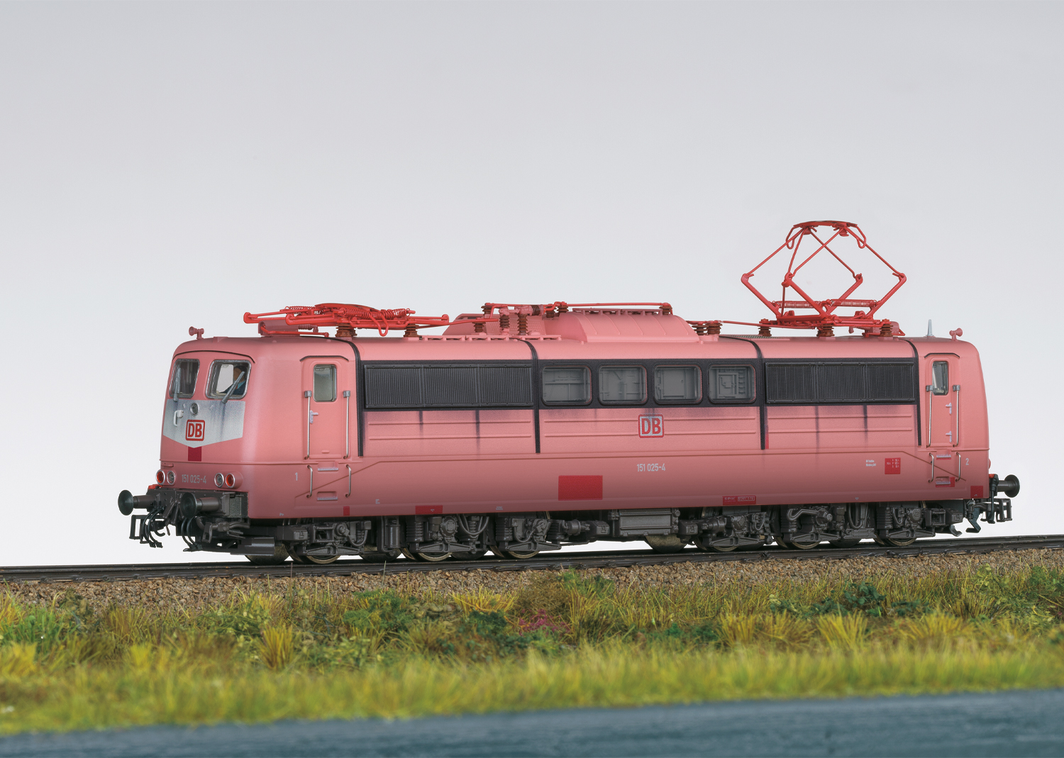 Vorbild: Elektrolokomotive Baureihe 151 der Deutschen Bahn AG. Orientrote Grundfarbgebung. Betriebsnummer 151 025-4. Betriebszustand ab 1998.