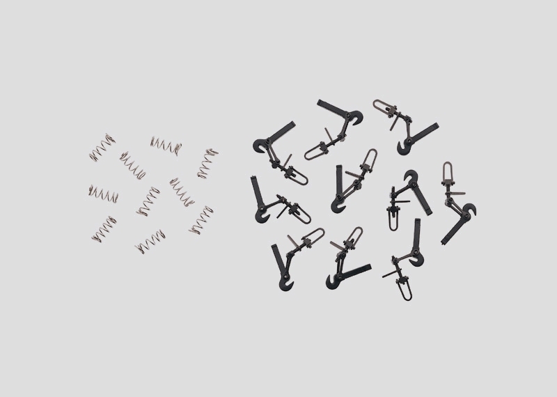 Detaillierte Miniaturisierung der Original-Schraubenkupplung. Länge durch Drehen des Innenteils mit Gewinde veränderbar. Durch Gelenke beweglich. Mit Befestigungsfeder. Inhalt 10 Stück. Die seit 1987 hergestellten Profi-1-Modelle besitzen mit wenigen Ausnahmen die Möglichkeit, die serienmäßige Klauenkupplung gegen diese Schraubenkupplung zu tauschen. Diese Kupplung entspricht optisch und in der Bedienung ihrem großen Vorbild. Ein Betrieb mit dieser Kupplung erfordert jedoch meist sehr große Mindestradien je nach Modell von 3,0 m bis zu 3,5 m. Aktuelle Profi-1-Modelle, die mit dieser Kupplung nachgerüstet werden können, erkennen Sie am entsprechenden Piktogramm.