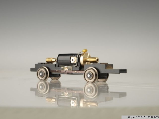 Motorisiertes Fahrgestell. Modelldetails: Zweileiter-Gleichstrom. Achsstand 46,0 mm.
