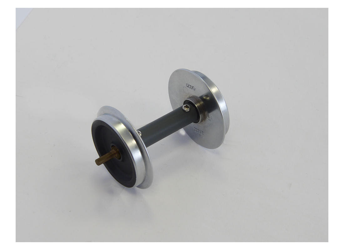 Metallradsatz für Wagen. 30 mm Durchmesser. Die kugelgelagerten Radsätze verringern den Rollwiderstand. Ideal bei langen Zügen.