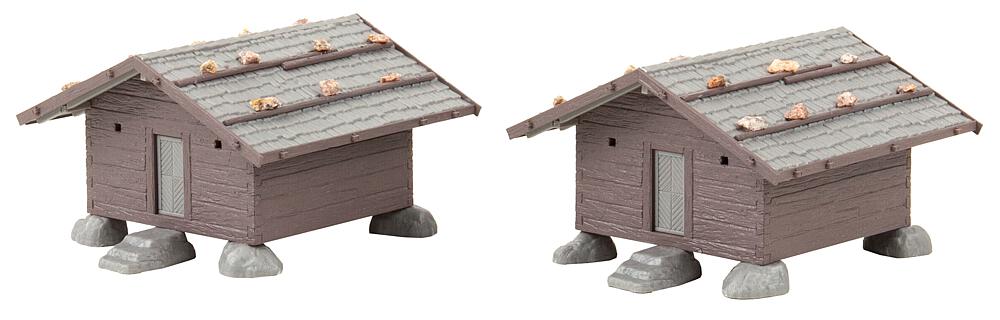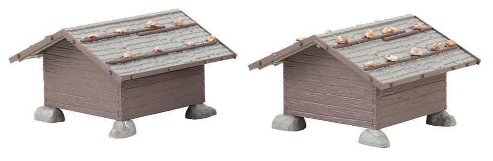 Bergbäuerliche Welt. Hütten-Set mit zwei Zweckbauten, die als Depot für Heu oder Brennholz dienen.