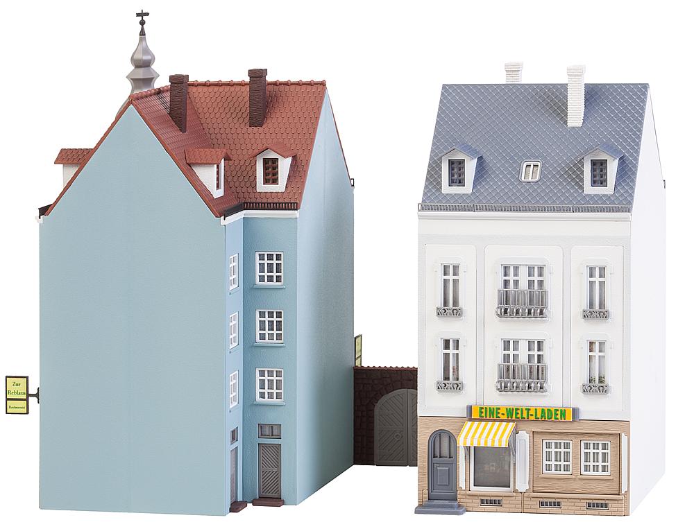 2 Stadthäuser Beethovenstraße. Das Eck- und das Reihenhaus der Beethovenstraße haben einen neuen Anstrich erhalten. Neben dem Telefonladen befindet sich ein Res taurant. In den oberen Stockwerken sind Studentenwohnungen untergebracht. Das Reihenhaus ist halbiert baubar. Maße: 117 x 118 x 200 mm, 85 x 104 x 176 mm.