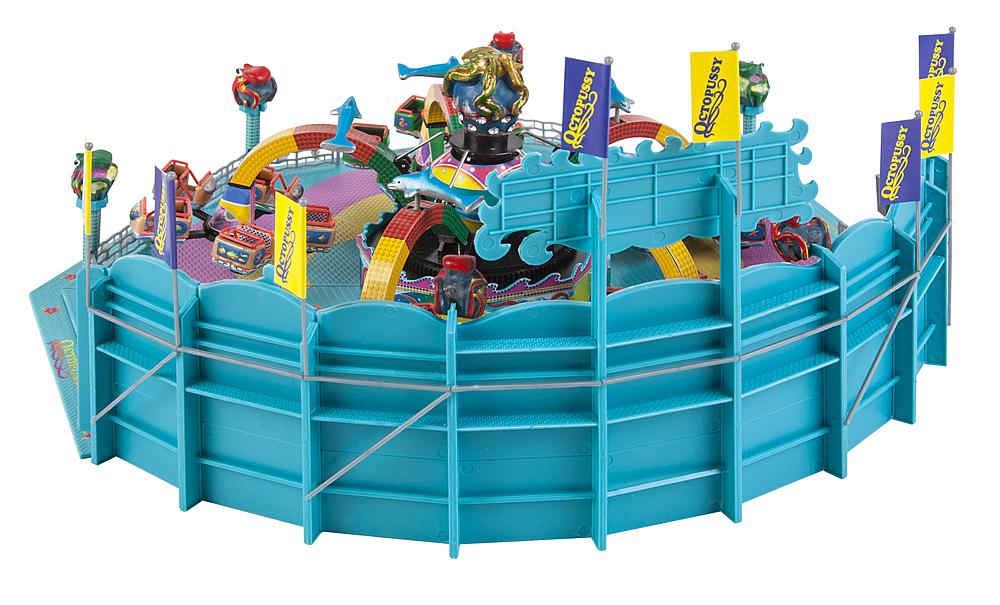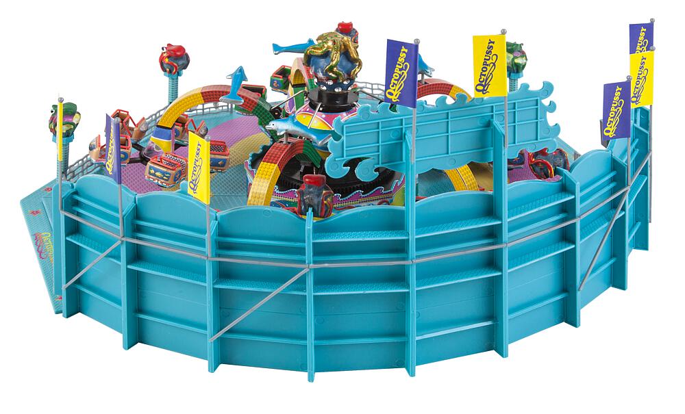 Gesteuert durch Ablaufmechanik, angetrieben mit 12-16 V, Wechselspannung. Seidenweicher Lauf und aufwändige Dekogestaltung machen das Modell zum Highlight auf jeder Kirmesanlage. Dieser Bausatz enthält: 417 Einzelteile in 10 Farben, Fensterfolie, 1 Antriebsmotor, 2 Dekos und 1 Bauanleitung.