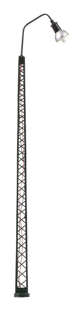Klassische Bogenleuchte mit Gittermast aus Metall. Besonders geeignet zur Beleuchtung von bahnnahen Szenerien, wie Bahnhöfen, Betriebswerken oder Gleisfeldern. Die einflammige Leuchte ist mit langlebiger LED-Technik ausgestattet. Höhe: 145 mm.