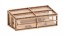 Spielgehege im Außenbereich. Lasercut-Modell eines Kleintierstalls aus Holz mit Überdachung und passender Innenausstattung für die Tiere, wie Rampen und Rückzugszonen.
