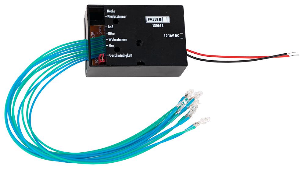 Das enthaltene Programm simuliert durch wechselnde Raum-, Flur- oder Treppenhausbeleuchtung ein belebtes Haus. Zwei Geschwindigkeitsstufen für Lichtwechsel wählbar. Schaltbar mit dem »Relaismodul«, Art. 161659 oder jedem handelsüblichen Schalter. Der Anschluss erfolgt an 12-16 V AC.