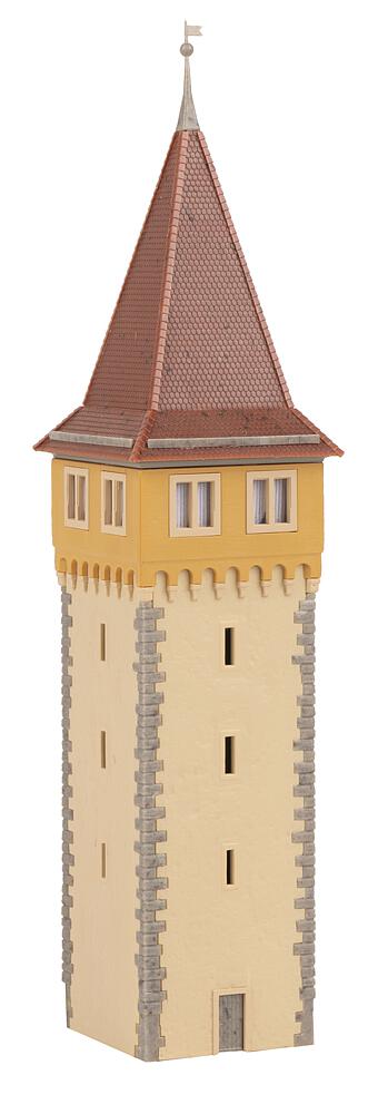 Limitierte Einmalauflage! Modell-Set bestehend aus einem hell sanierten Verteidigungsturm mit grauen Ecksteinen und einem Zeltdach, zwei kleinen Wehrtürmchen sowie drei Altstadtmauer-Elementen mit gedecktem Wehrgang und optionalen Rundbögen. Für die weitere Szenengestaltung ist im Bausatzumfang ein Brunnen mit Brunnenfigur und vier wasserspeienden Rohren enthalten. Modell ohne Funktion. Variable Anordnung und Kombinationsmöglichkeit mit allen weiteren Elementen der FALLER Altstadtmauer-Serie.