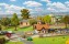 Umfassend! Mehrteiliges Set bestehend aus einem Landbahnhof mit angebautem Güterschuppen, einem Bahnsteig sowie dem passenden beschrankten Bahnübergang mit Zubehör für die sichere Überquerung der Gleise.