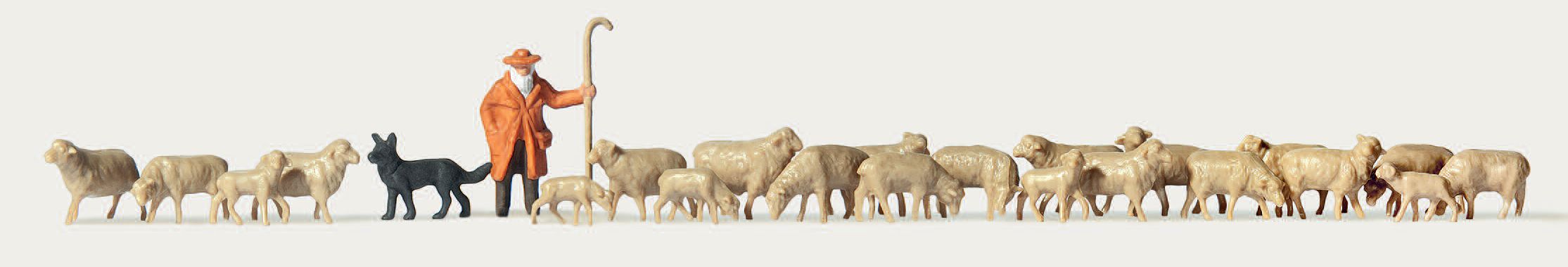 Maßstab 1:87 - Schäfer mit Schafherde und Hund