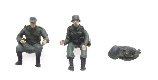 Fertigmodell aus Resin. Kettenkradbesatzung in feldgrau der Wehrmacht. Zwei Figuren und Bepackung.