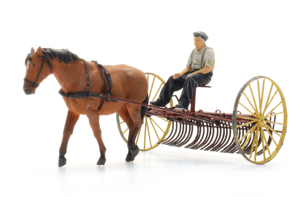 Heurechen mit pferd + Figur - 1:87 Fertigmodell aus Resin, lackiert