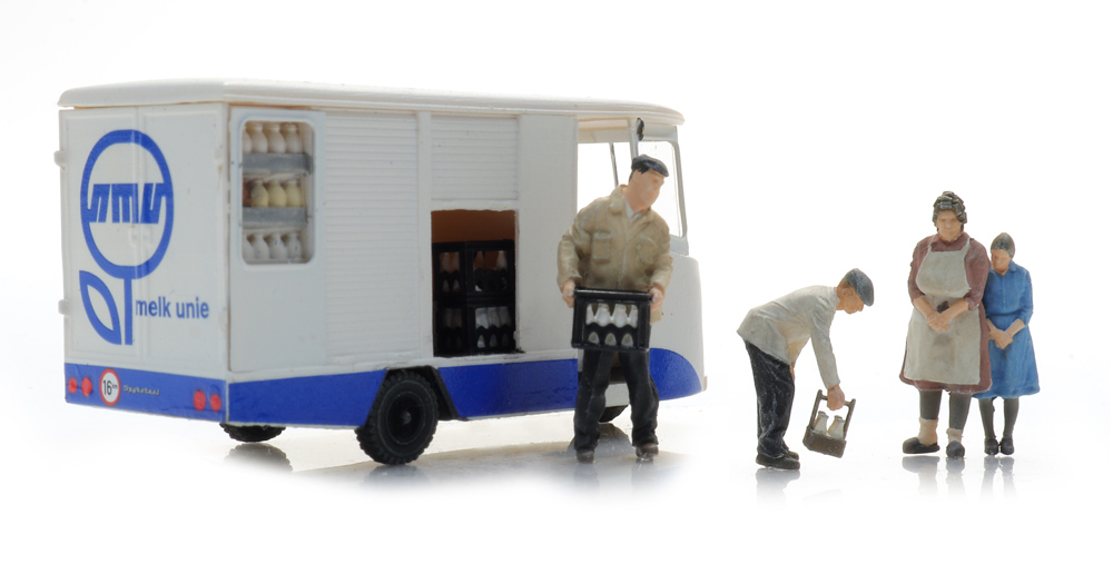 Milchmänner mit Kundinnen 1970-90 (3x) - 1:87 Fertigmodell Figuren, lackiert