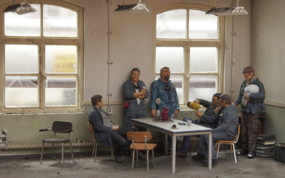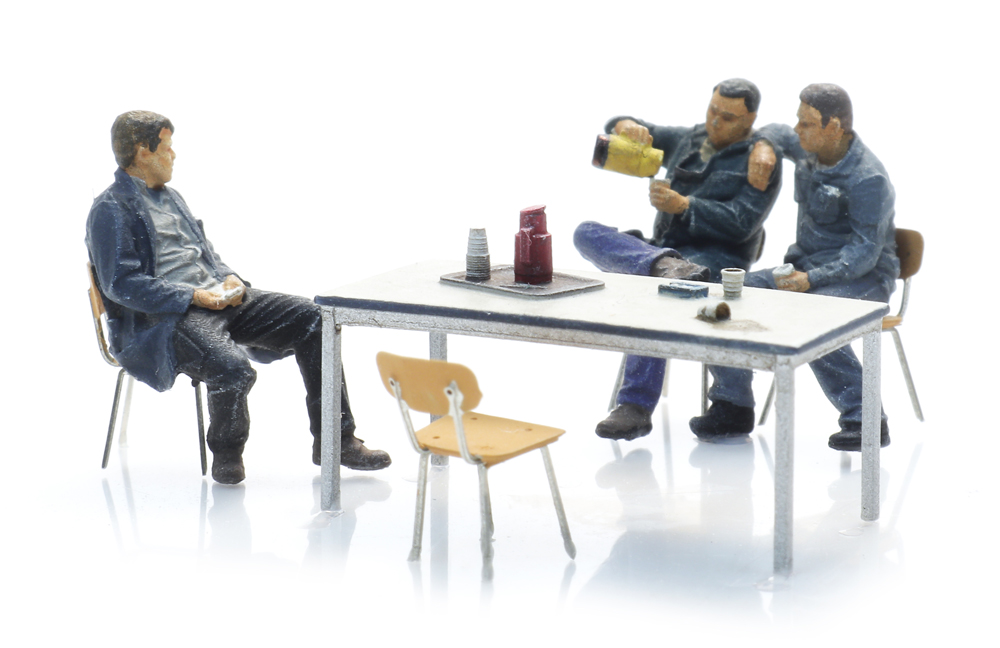 Stahlarbeiter - Mittagspause (3x) - 1:87 Fertigmodell Figuren, lackiert