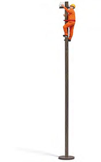 Mastkletterer der Epoche 5 auf Telegrafenmast aus echtem Holz.