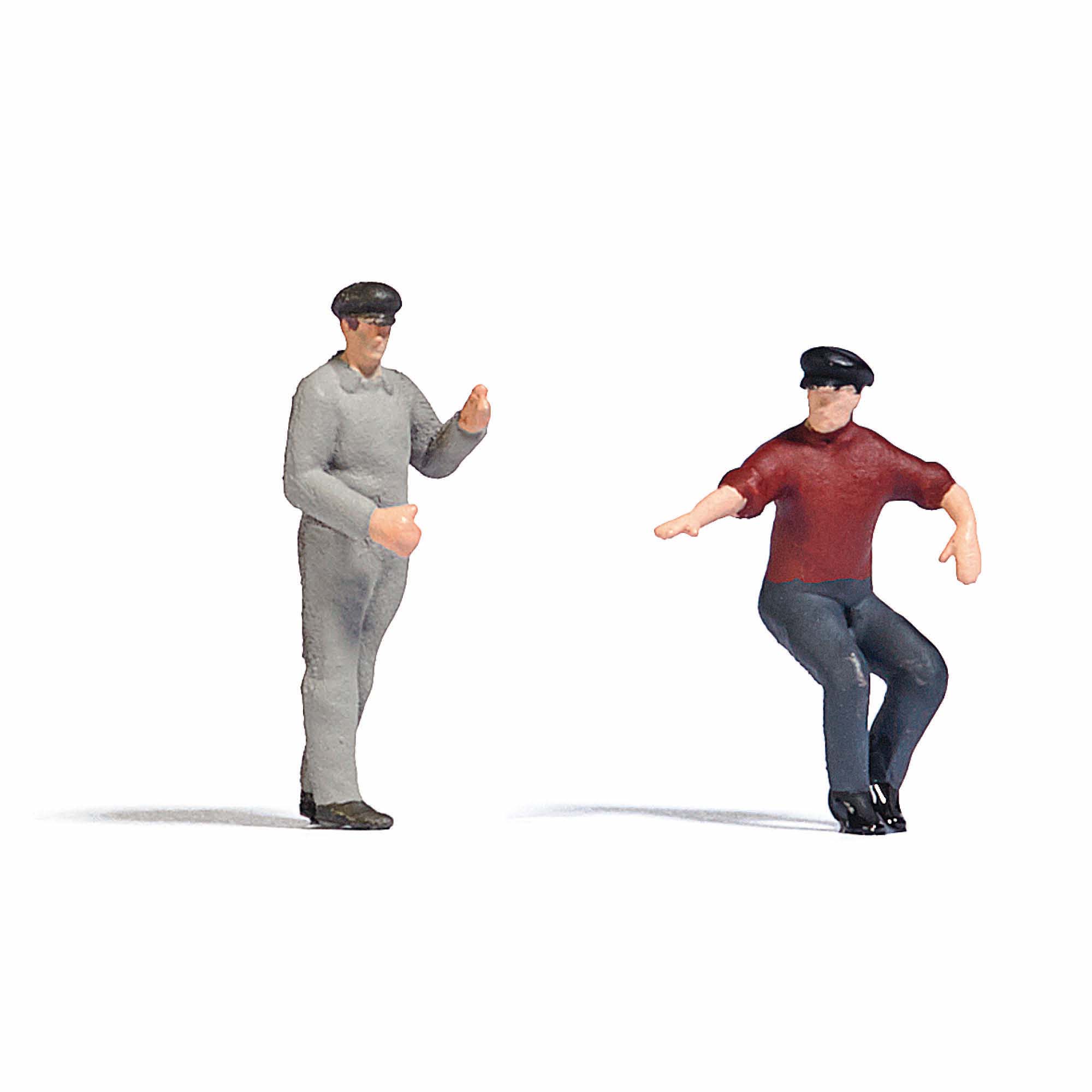 Set bestehend aus einem stehenden und einem sitzenden Feldbahnlokführer.