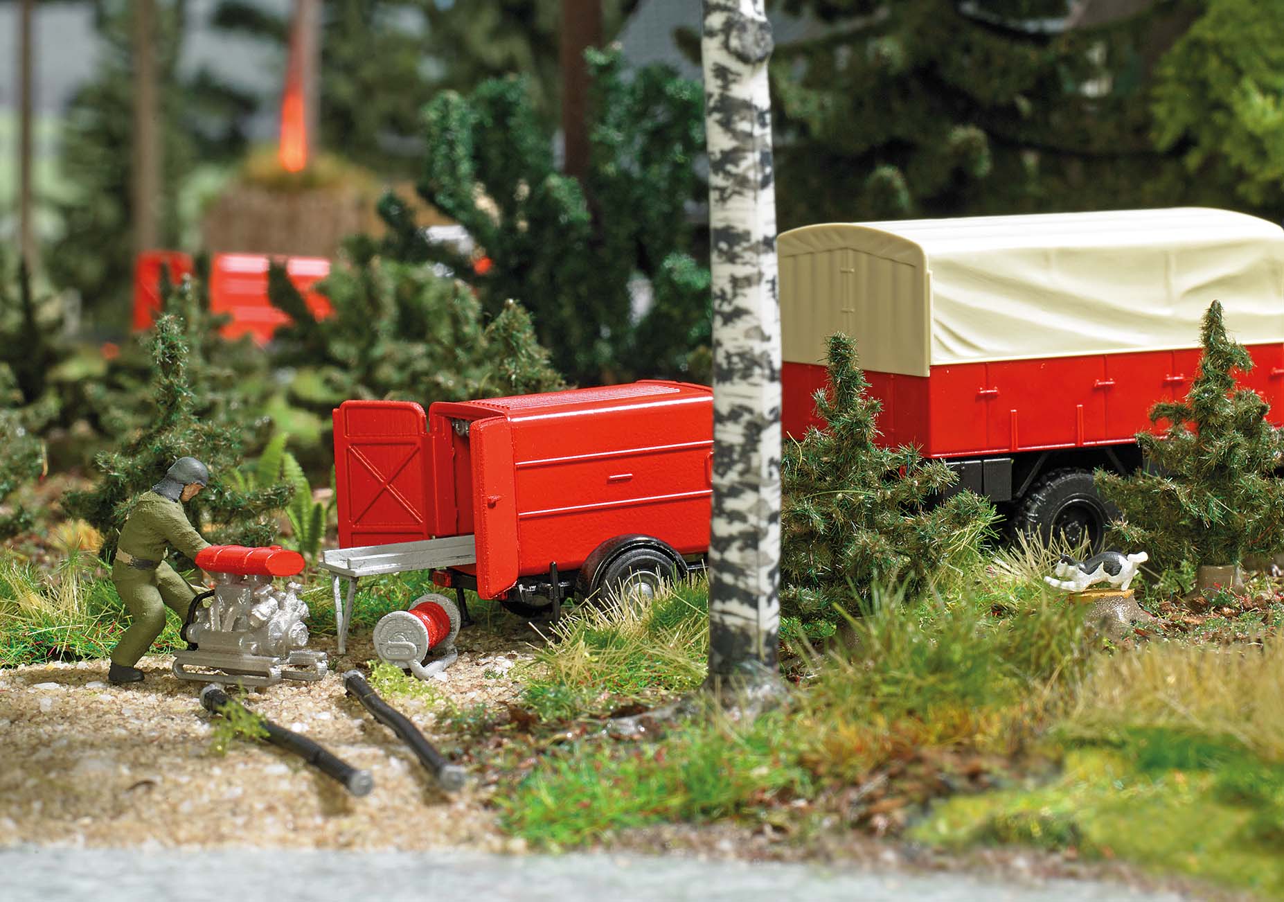 Passende Zugfahrzeuge sind die Busch Feuerwehr-Fahrzeuge vom Typ Robur LO.