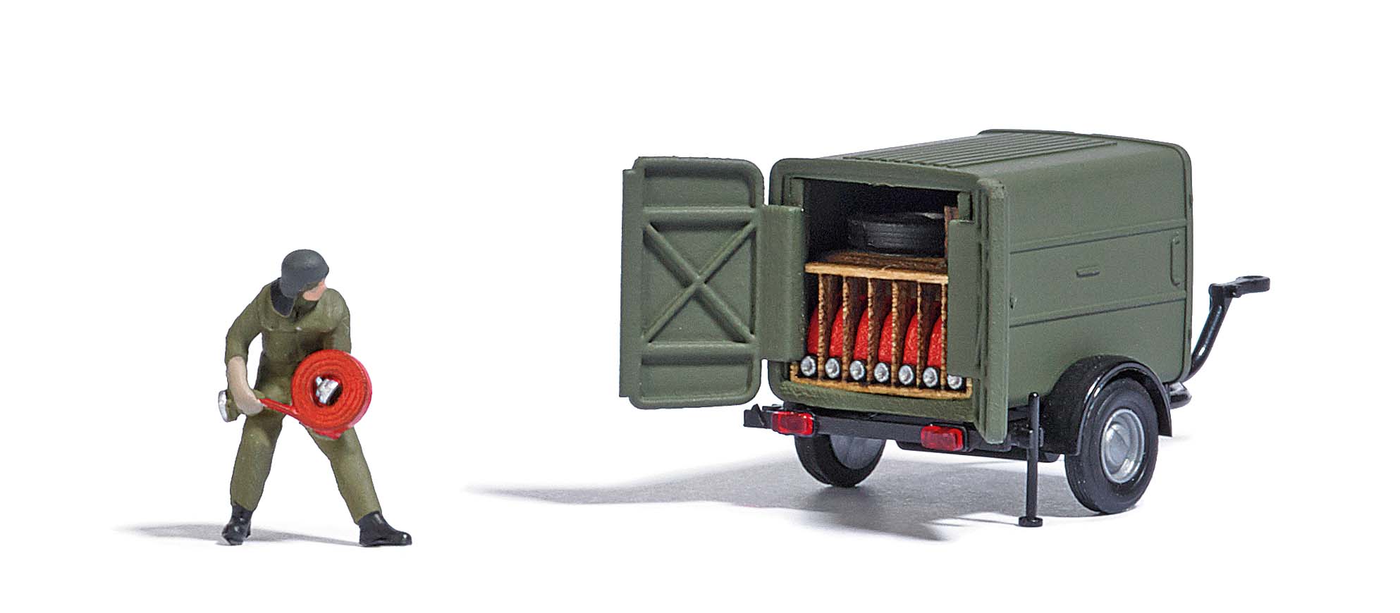 Uniform. Passende Zugfahrzeuge sind die Busch Feuerwehr-Fahrzeuge vom Typ Robur LO.