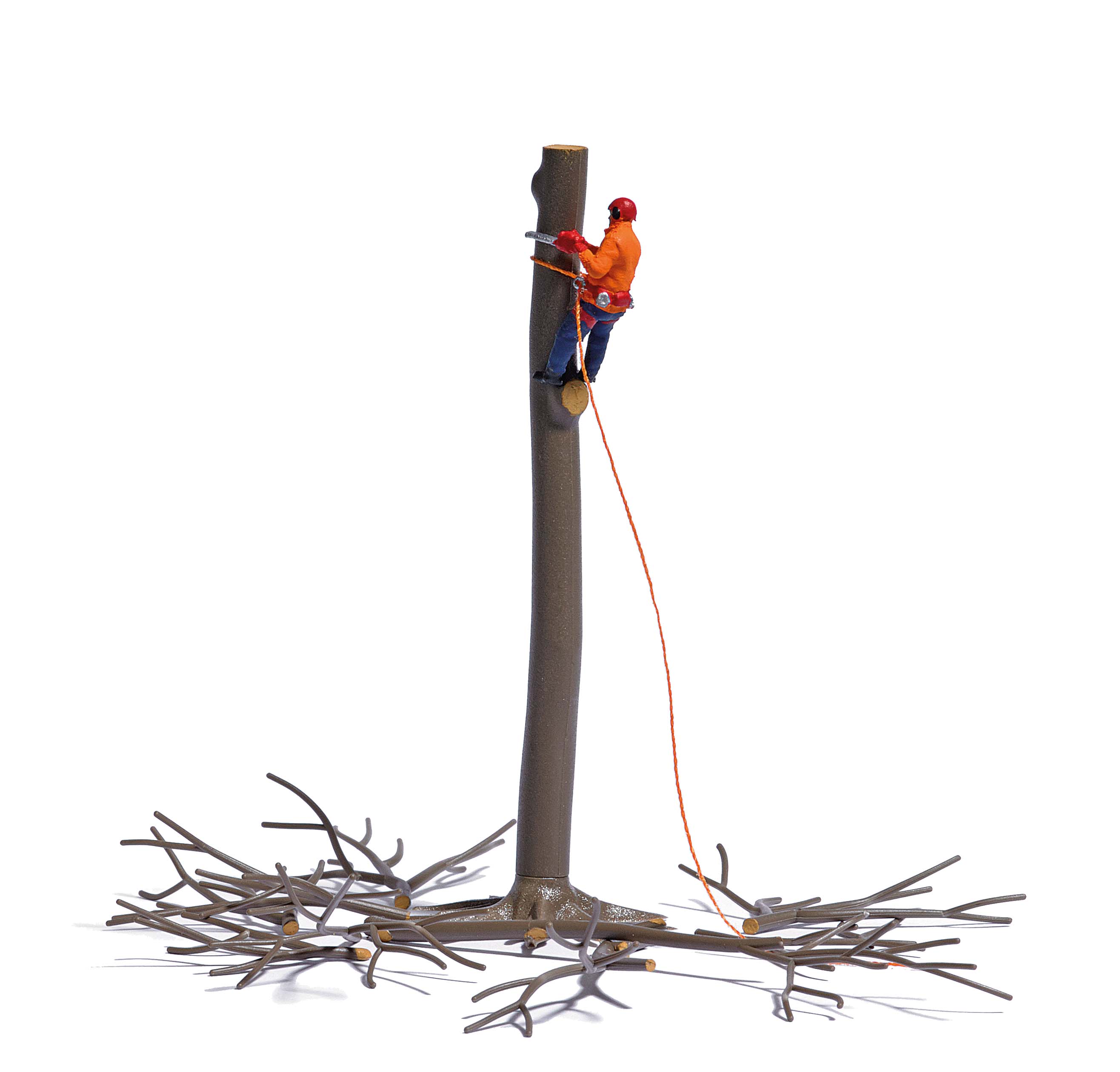 Szene einer Baumabtragung mit kommunalem Mitarbeiter in