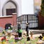 Der Friedhofsbrunnen als beliebter Treffpunkt: Zwei ins Gespräch vertiefte Damen mit Gießkanne bzw. Handtasche, 2 Parkbänke, ein Brunnen mit Schwengelpumpe und 2 weitere Gießkannen. Dieses Action Set ermöglicht eine stimmungsvolle und realistische Ausgestaltung von Park- oder Friedhofsanlagen.