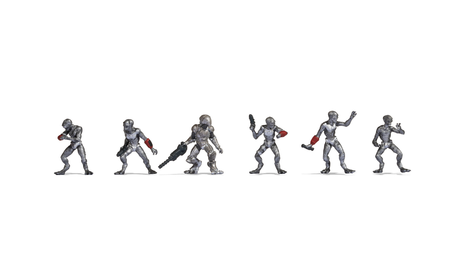 Leben sie längst unter uns? Seit ein UFO 1947 bei Rosswell-Zwischenfall abgestürzt ist, sind die Außerirdischen in aller Munde! Angeblich landen immer wieder kleine grüne Männchen mit ihren fliegenden Untertassen auf der Erde. Unsere extraterrestrischen Lebewesen ähneln aber eher einem ?Grey?. Einige von ihnen sind mit Laser-Kanonen bewaffnet. Ihre silbernen Rüstungen schützen sie nicht nur sondern sind gleichzeitig ein Raumanzug, der sie mit lebenserhaltenden Stoffen versorgt. Neben Laser-Pistolen, Transpondern und Funkgeräten tragen einige Aliens einen Helm. Einzig Fred ist total verwirrt seit dem Absturz und schaut sich hilfesuchend um.