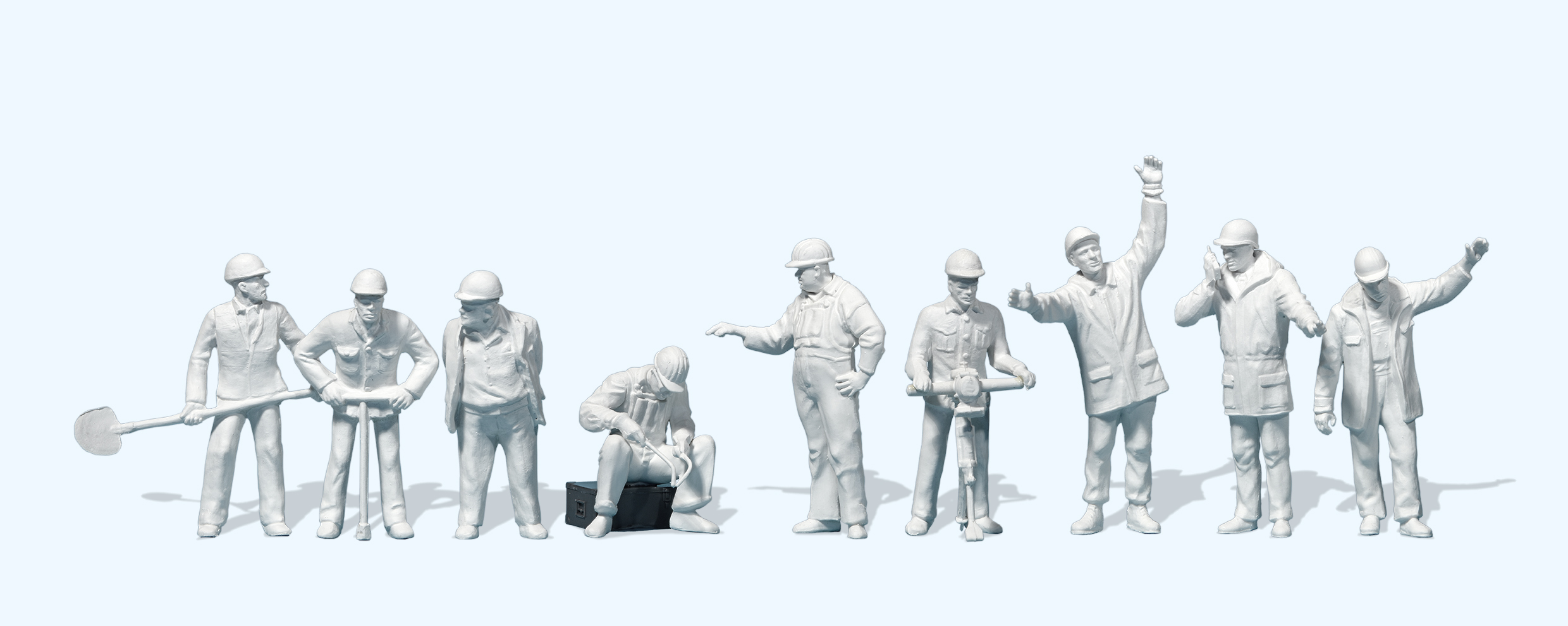 Preiser 63003 Bahn- und Gleisbauarbeiter 9 Unbemalt.