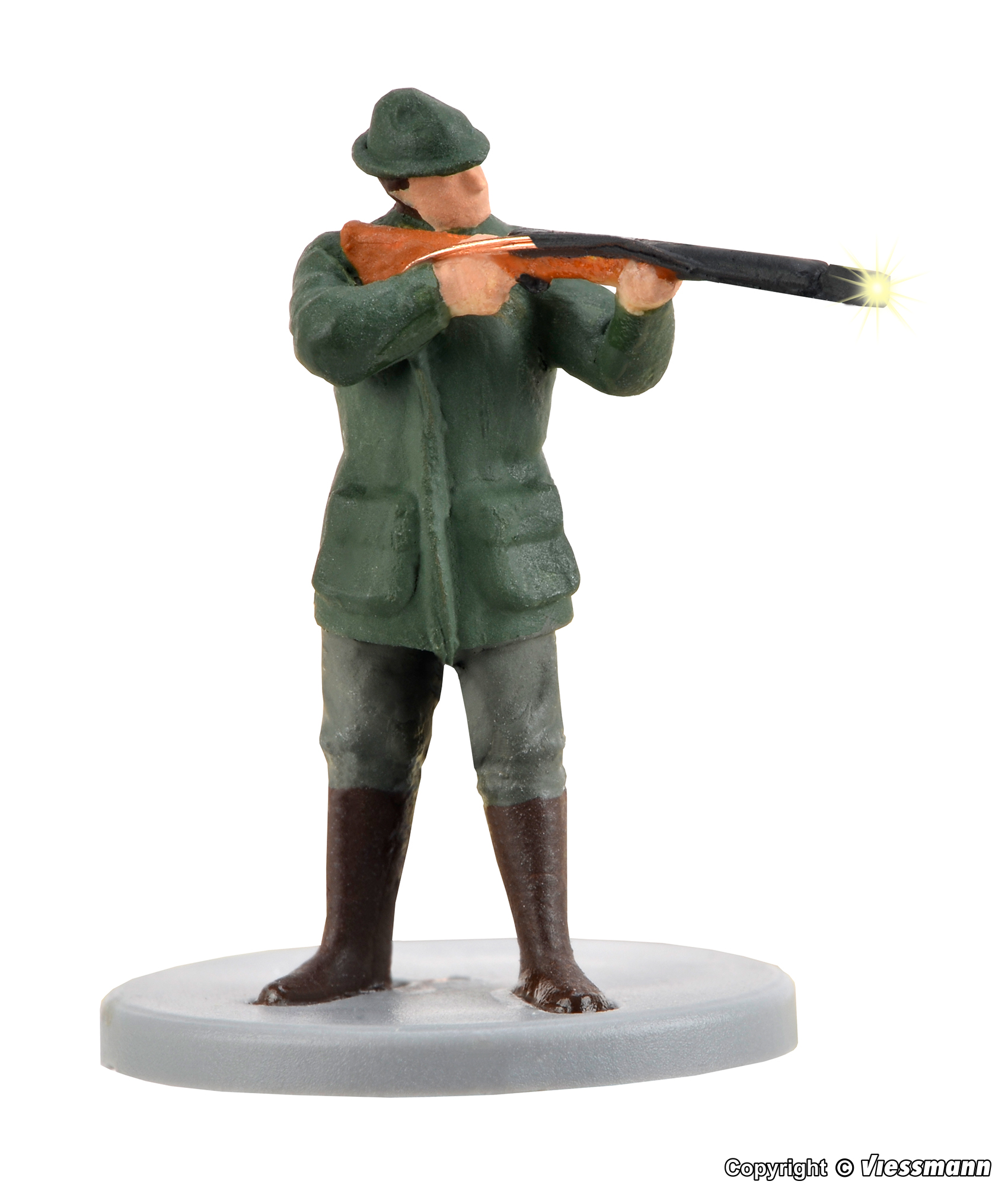 Das Gewehr im Anschlag ist der Jäger auf der Pirsch im Wald oder auf Feldern und Wiesen. In unregelmäßigen Abständen blitzt durch eine Mikro-LED simuliertes Mündungsfeuer aus dem Lauf. Das passende Soundmodul Art. 5574 erzeugt auf das...