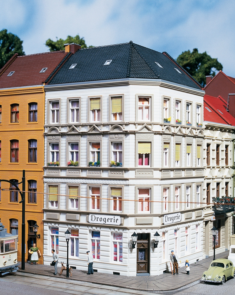 Wohn- und Geschäftshaus als Farbvariante vom Eckhaus Schmidtstraße 11. Mit den Modellen Schmidtstraße 10 und 13 bis 29 haben Sie die Möglichkeit, einen Straßenzug komplett zu gestalten. Fassade mit filigraner Stuckarbeit.
