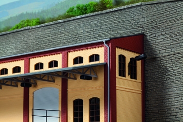 Mit diesem Modell lässt sich eine Bahn- oder LKW-Verladeszene darstellen. Zwei Rampen zur wahlweisen Nutzung und Lampen liegen bei. Die Rolltore sind auch im offenen Zustand darstellbar. Zur Innengestaltung sind Podest und Treppe mit Geländer vorgesehen.