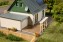 An dieses moderne Einfamilienhaus wurden eine Terrasse und eine Garage, die mit Regalen eingerichtet werden kann, angebaut.
