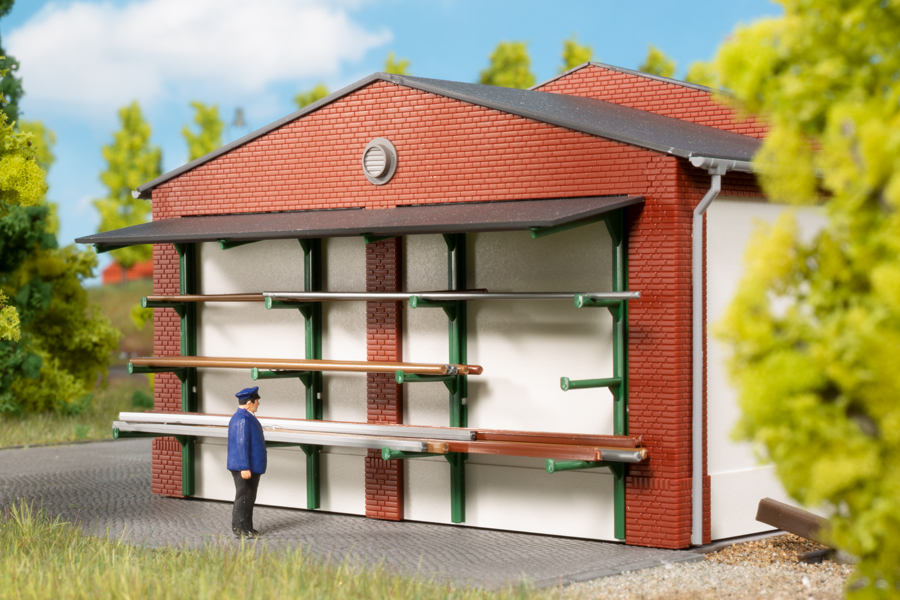 Im Gebäude der Bahnmeisterei befinden sich die Arbeits- und Aufenthaltsräume des Bahnmeisters, der Streckenläufer und der Bahnarbeiter. Hier wird Material und Werkzeug für die täglichen Arbeiten zur Unterhaltung eines bestimmten Streckenabschnitts gelagert. Das Modell besteht aus Büroräumen und einer Garage. Unter dem rückseitigen Schleppdach können kleine Fahrzeuge untergestellt werden. Im Stangenlager sind z.B. neue Masten für Signaltafeln gelagert. Über eine aus alten Schwellen errichtete Kopframpe können Fahrzeuge auf Flachwagen verladen werden.