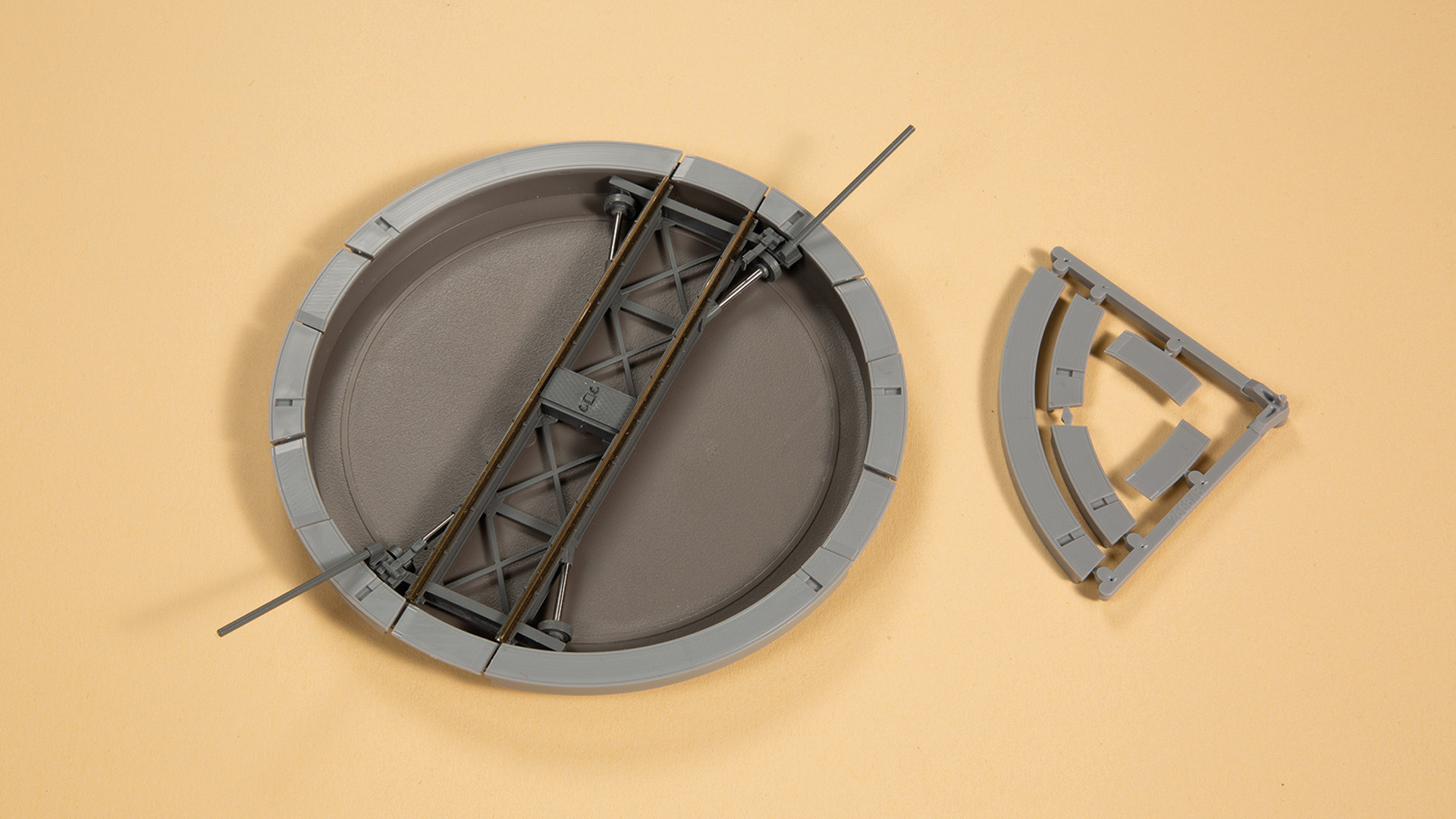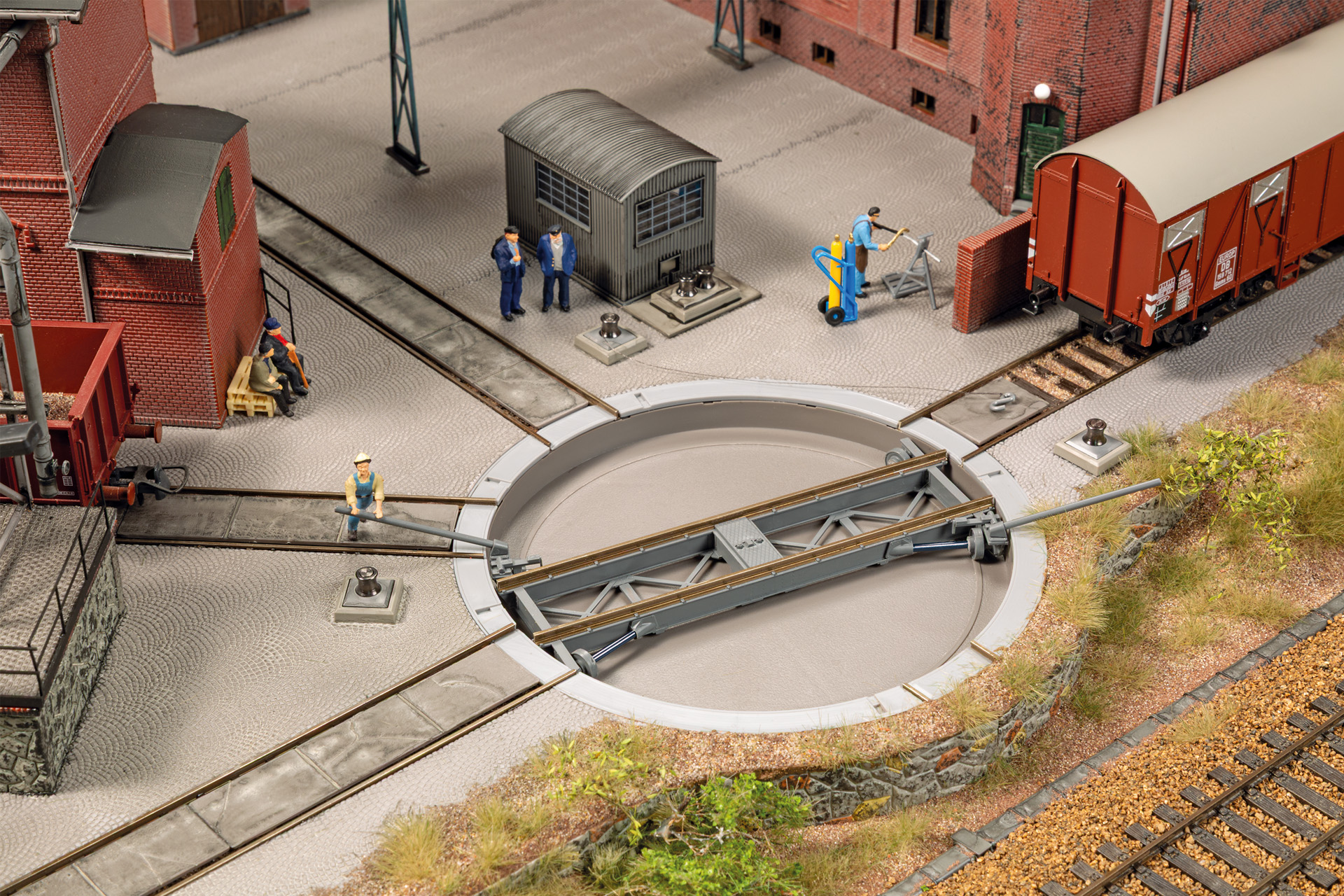 Diese manuelle Drehscheibe ist eine robuste Lösung für alle, die bewusst ohne Elektrik arbeiten möchten.Der Bausatz ist für Waggons gedacht und kommt ohne Stromübertragung und ohne elektrische Funktionen aus. Ideal für industrielle und gewerbliche Szenen mit einfachem Rangierbetrieb.Bühnenlänge 95 mm, Gesamtdurchmesser 111 mm. Abgangswinkel 90/45 Grad. Passend für Gleissysteme mit 2,07 mm Profilhöhe (z. B. Tillig).