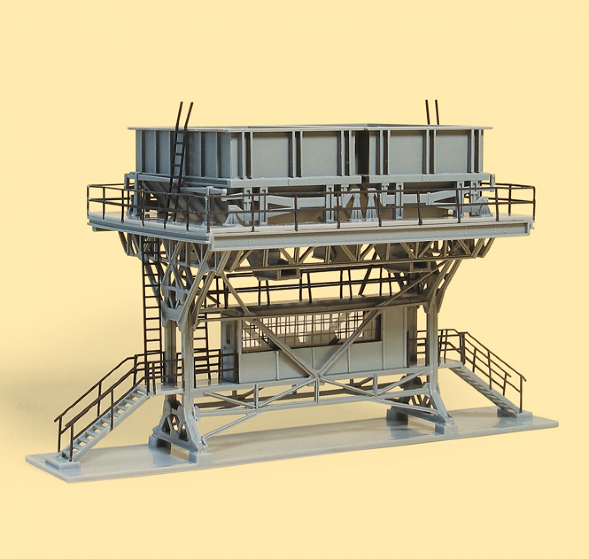 Das Vorbild dieses Modells steht in Chemnitz-Hilbersdorf und ist eine Variante der DR/DRG- Einheitsbekohlung. Diese Art Kohlewiegebunker wurden seit den 1930er Jahren an zahlreichen Orten aufgestellt. Die Stahlkonstruktion ist sehr detailgetreu und filigran dargestellt.