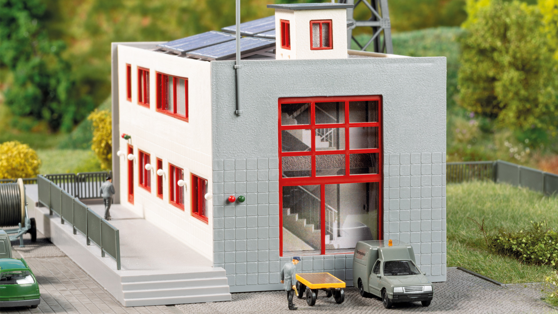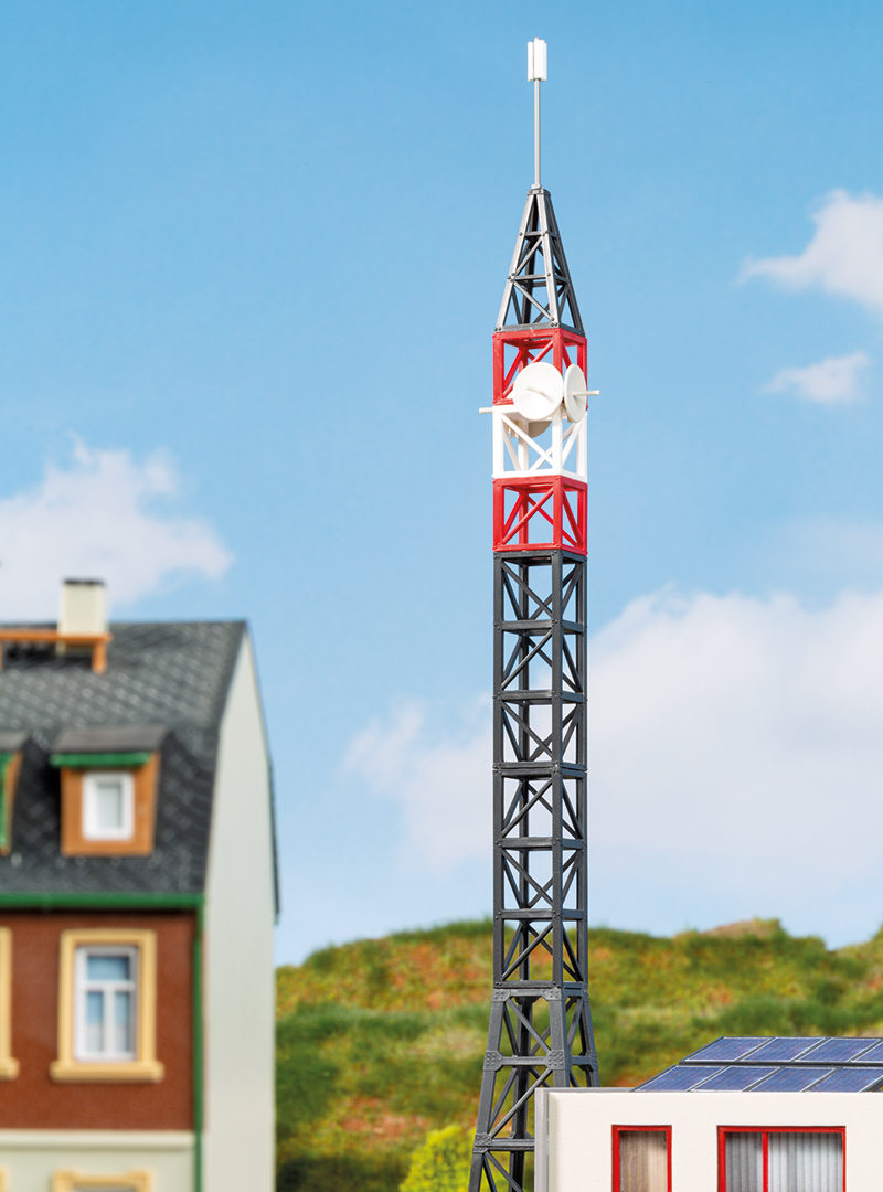 Eine Funkstation, die moderne Infrastruktur glaubwürdig auf die Anlage bringt. Zum Bausatz gehören Funkmast und Solaranlagen auf dem Dach, damit das Modell auch aus der Nähe wirkt. 232 × 137 × 285 mm