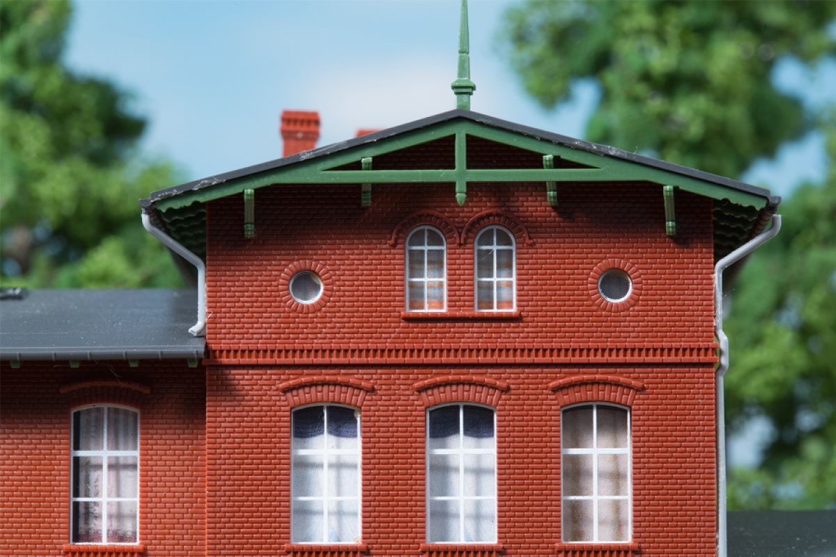 Das Vorbild steht in Krakow am See und hat typisch preußische Architekturmerkmale. Sie können zwei verschiedene Zeitepochen darstellen. Einerseits die Epoche um 1900 mit einem Anbau in Holzkonstruktion und andererseits ab Epoche III mit einem massiven Anbau und modernen Fenstern. Beide Varianten liegen bei. Liebevolle Details machen die verschiedenen Epochen lebendig.