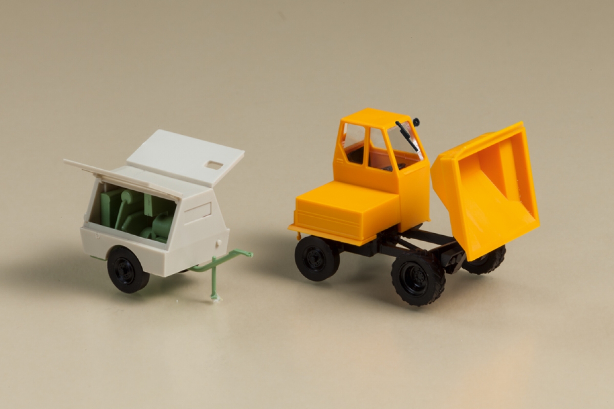 Der Typ Waran 1501 ist ein Vorderkipper. Besonders hervorzuheben sind die vorbildgerechte Bereifung und die kippbare Mulde. Fahrzeuge dieser Art kommen vor allem im Baugewerbe zum Einsatz. Der Kompressoranhänger HV 1-90/125 stellt ein typisches Vorbild dar.