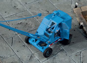 Bausatz. Der selbstfahrende Lader T170 wurde ab Mitte der 1950er Jahre in der DDR produziert. Mit eigenem Antrieb fuhr er nur 3,5 km/h "schnell". Mit bis zu 20 km/h konnte er geschleppt werden. Der 6,3 m lange Ausleger aus zwei Rohren wurde mit Seilen gehoben und gesenkt. Mit dem 10 PS, später 13 PS starken Motor konnten bis zu 0,8 t gehoben werden. Der filigrane Bausatz ist eine exakte Nachbildung des Vorbildes.