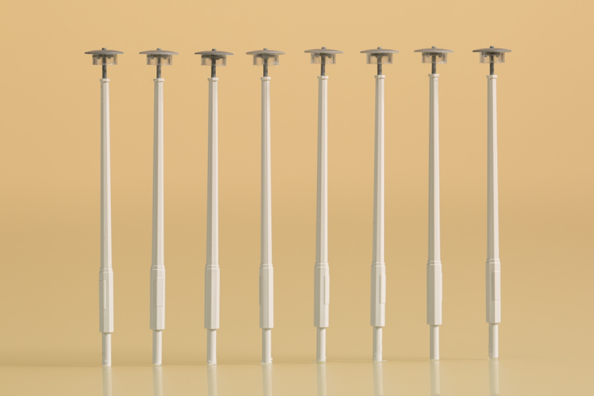 Attrappen. Diese Leuchten vom Typ RSL1 waren im DDR-Straßenbild seit den 1960er Jahren anzutreffen. Überwiegend auf einem Betonmast montiert, erhellen sie Straßen und Plätze auch heute noch in vielen Städten und Gemeinden. Scheiben aus gebogenem Strukturglas, die durch Metallbügel gehalten werden, gaben der Rundscheibenleuchte ihren Namen.