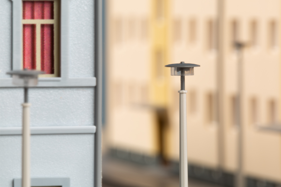 Attrappen. Diese Leuchten vom Typ RSL1 waren im DDR-Straßenbild seit den 1960er Jahren anzutreffen. Überwiegend auf einem Betonmast montiert, erhellen sie Straßen und Plätze auch heute noch in vielen Städten und Gemeinden. Scheiben aus gebogenem Strukturglas, die durch Metallbügel gehalten werden, gaben der Rundscheibenleuchte ihren Namen. Die Attrappen sind ideal für die Ausgestaltung von Wohngebieten, Parks oder Straßenzügen einsetzbar.